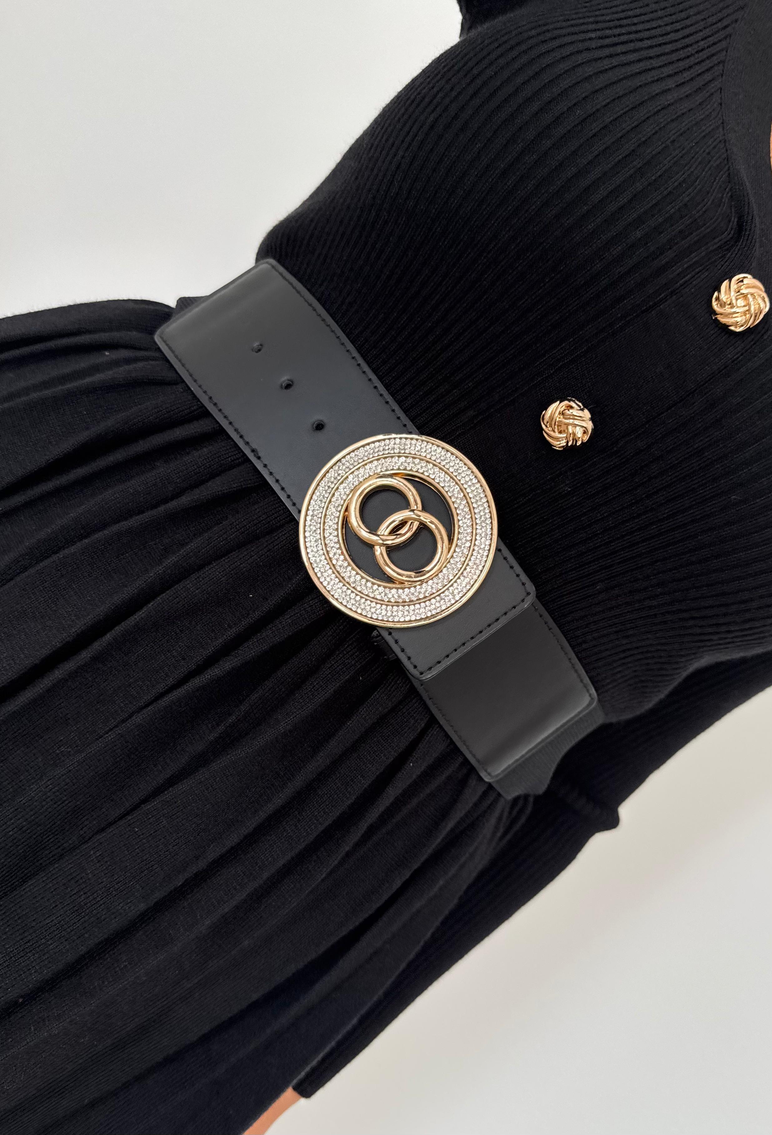 Cinturone elastico e regolabile con fibbia dorata con strass
