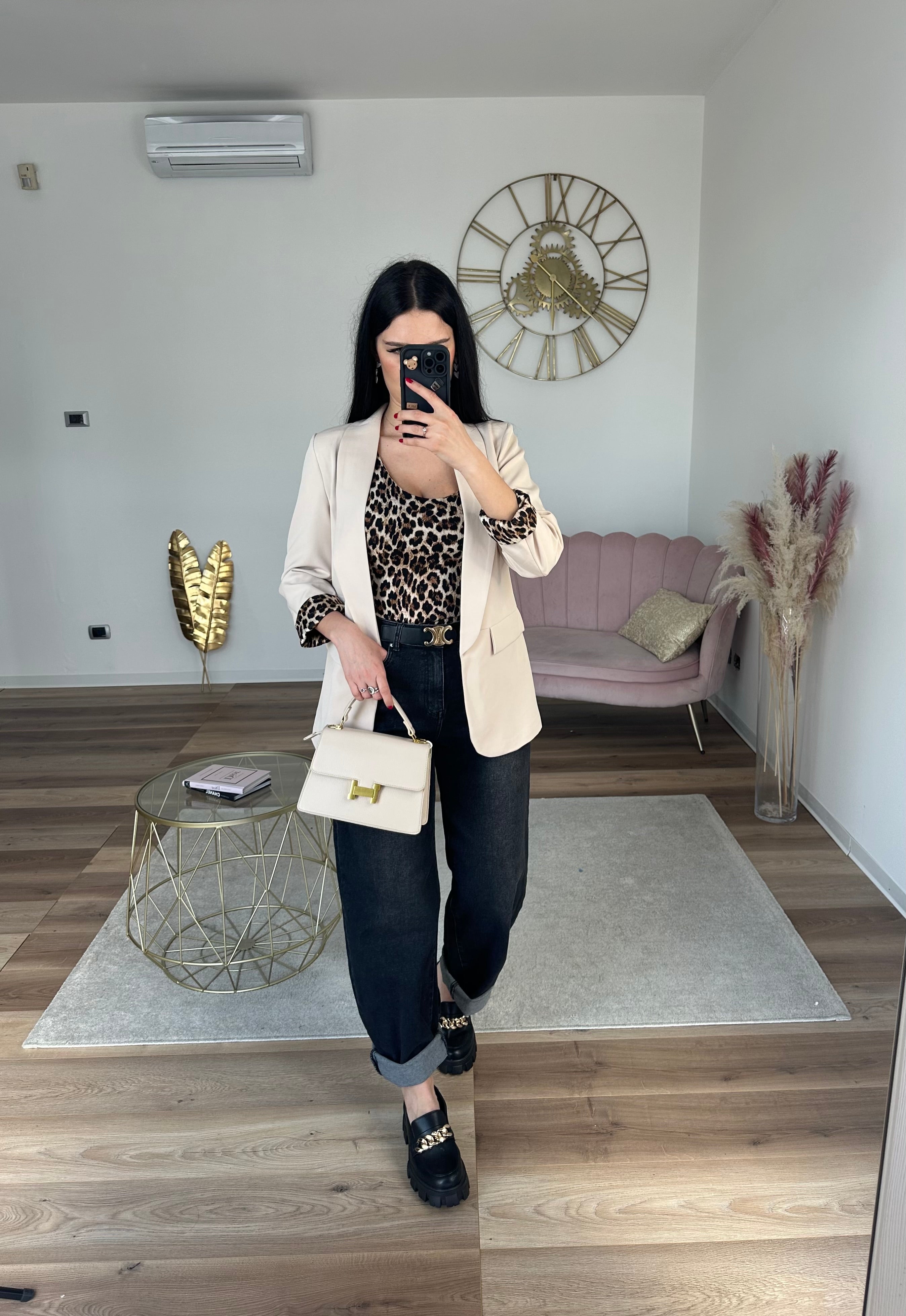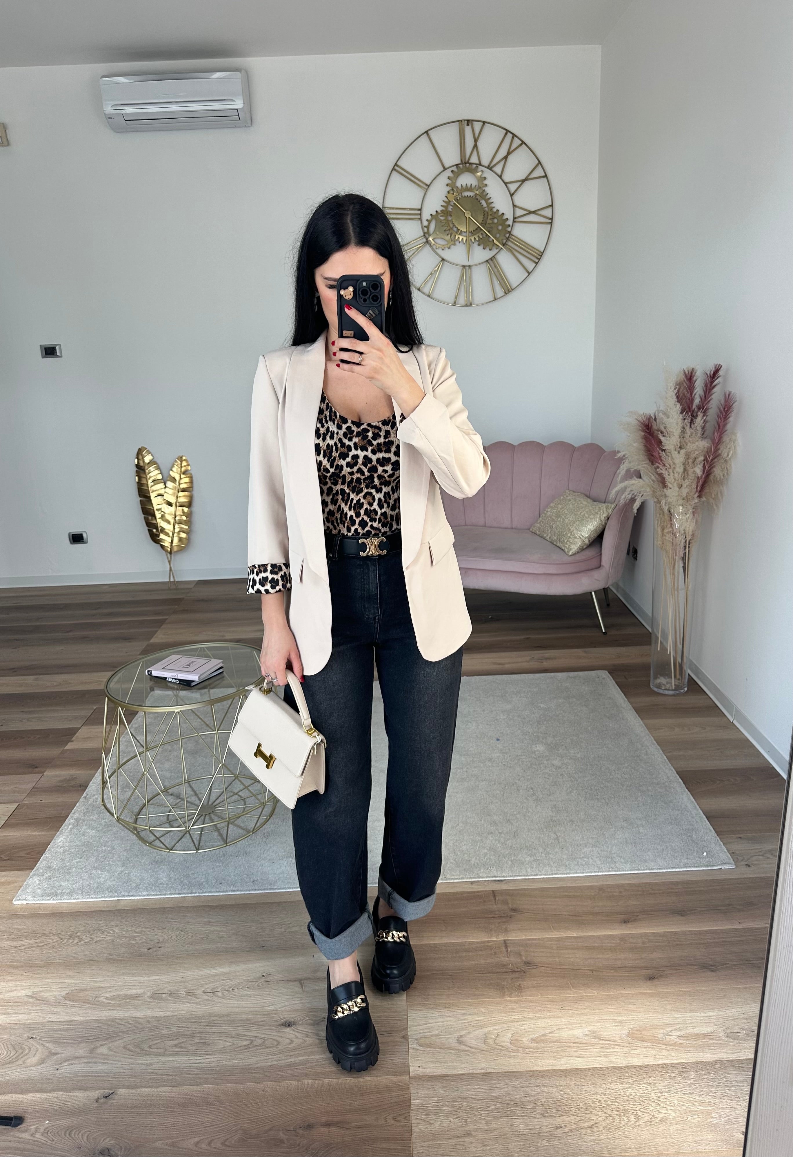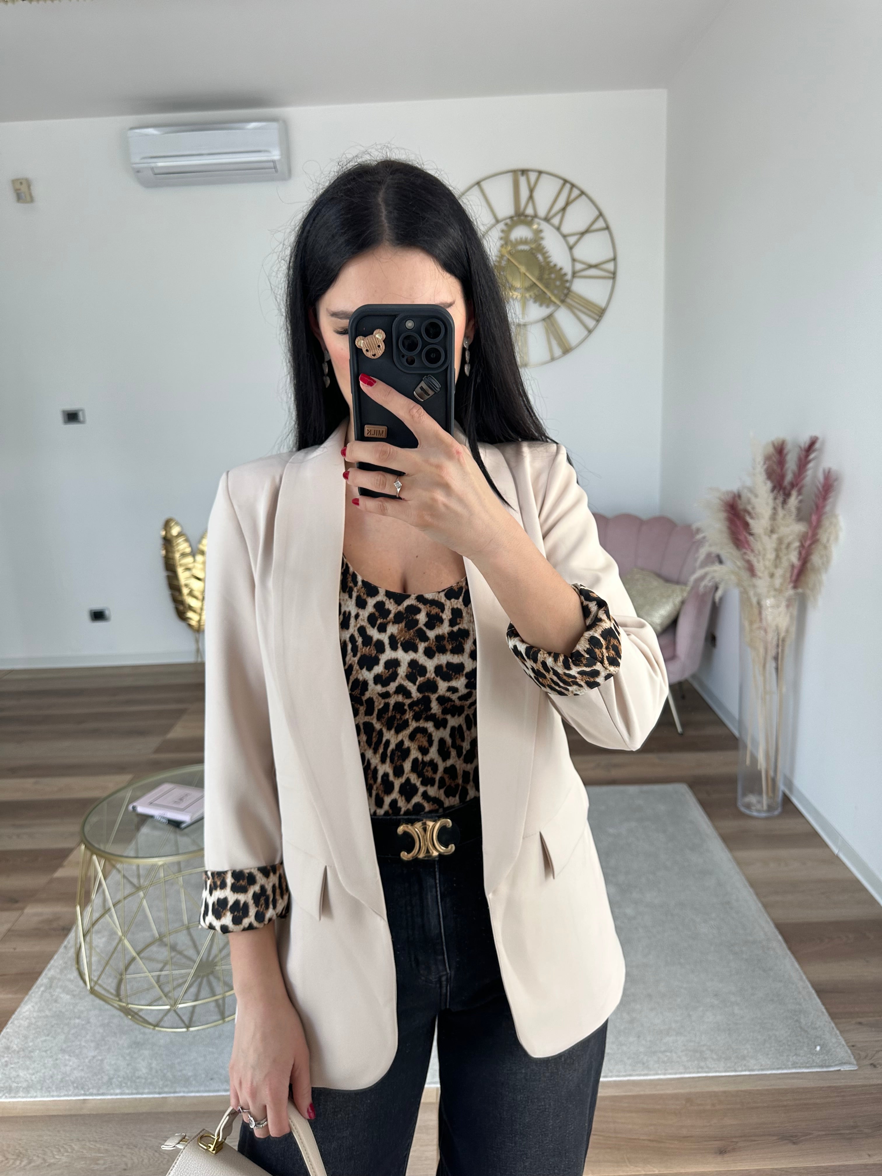Blazer con fodera animalier, finte tasche, spalline imbottite.