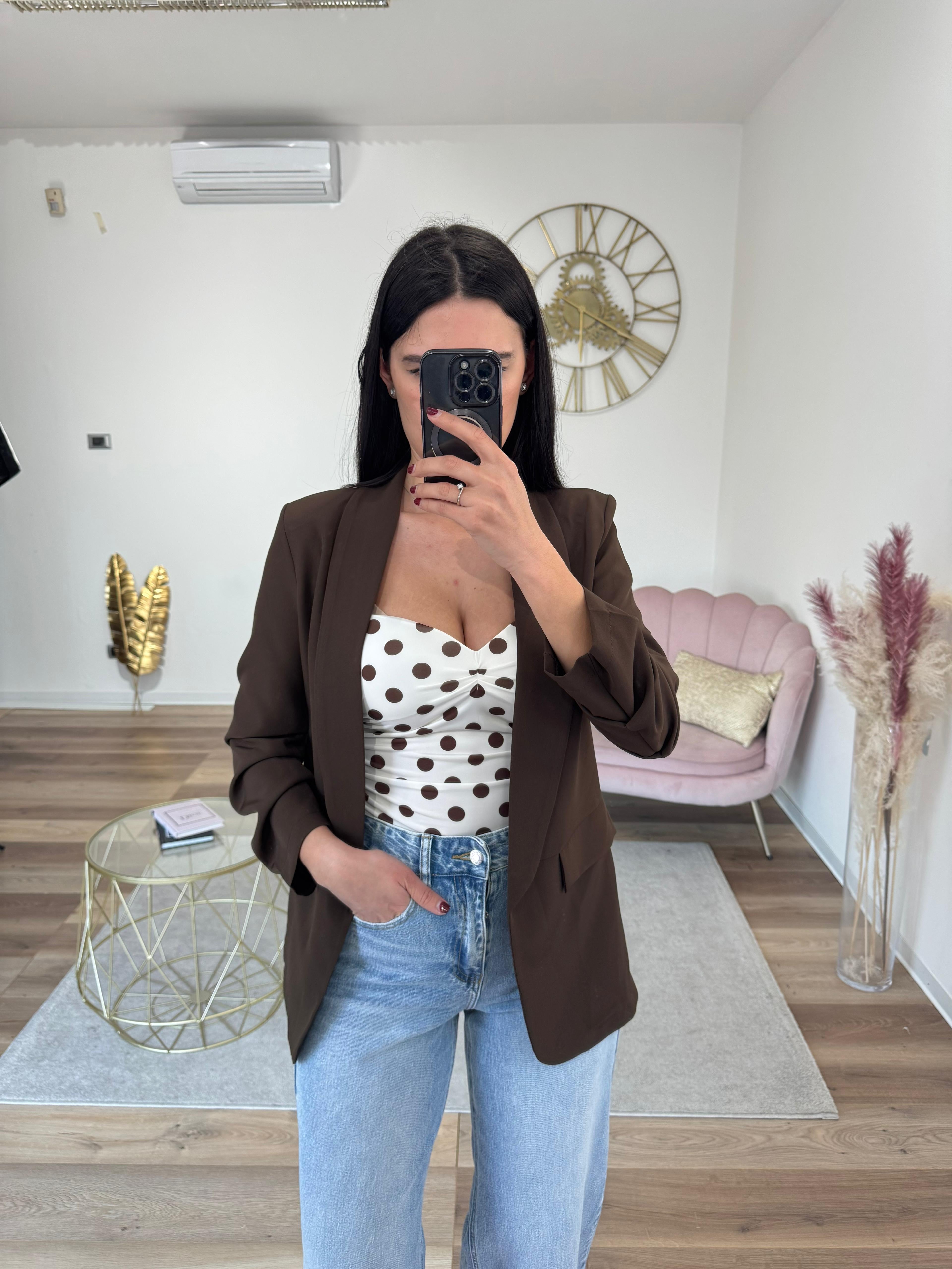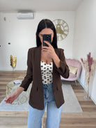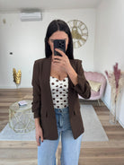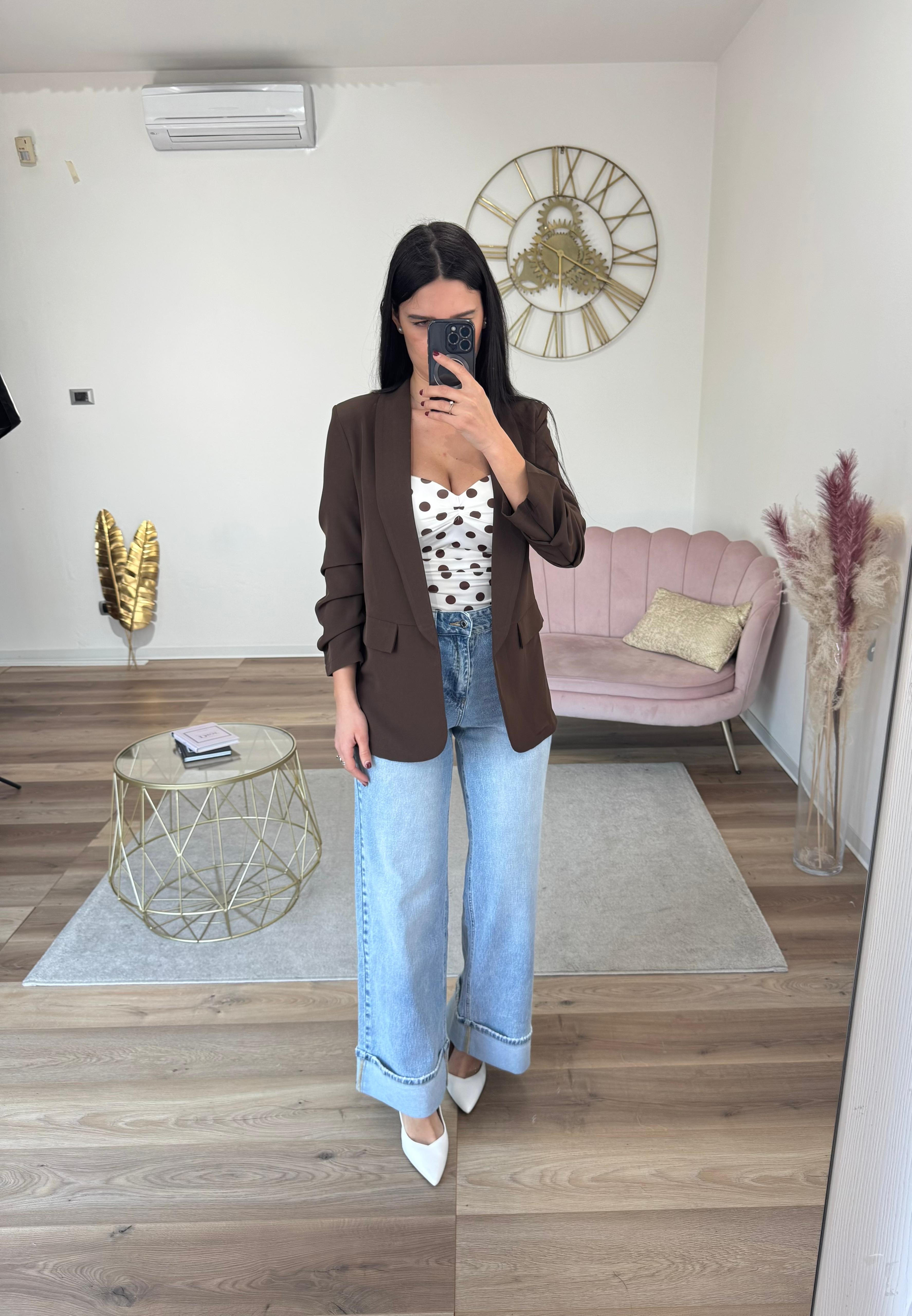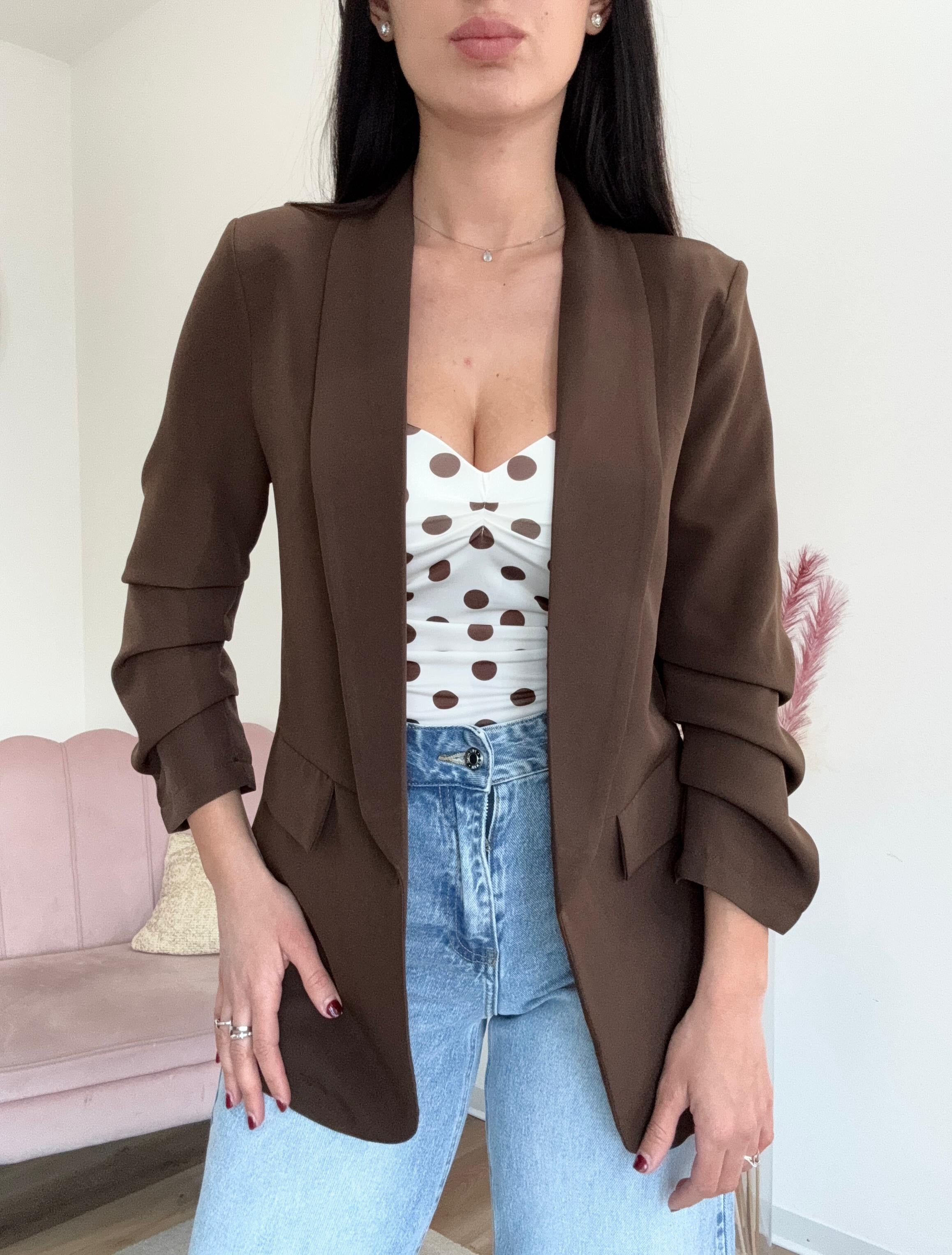 Blazer non foderato internamente, spalline imbottite e finte tasche, maniche arricciate.