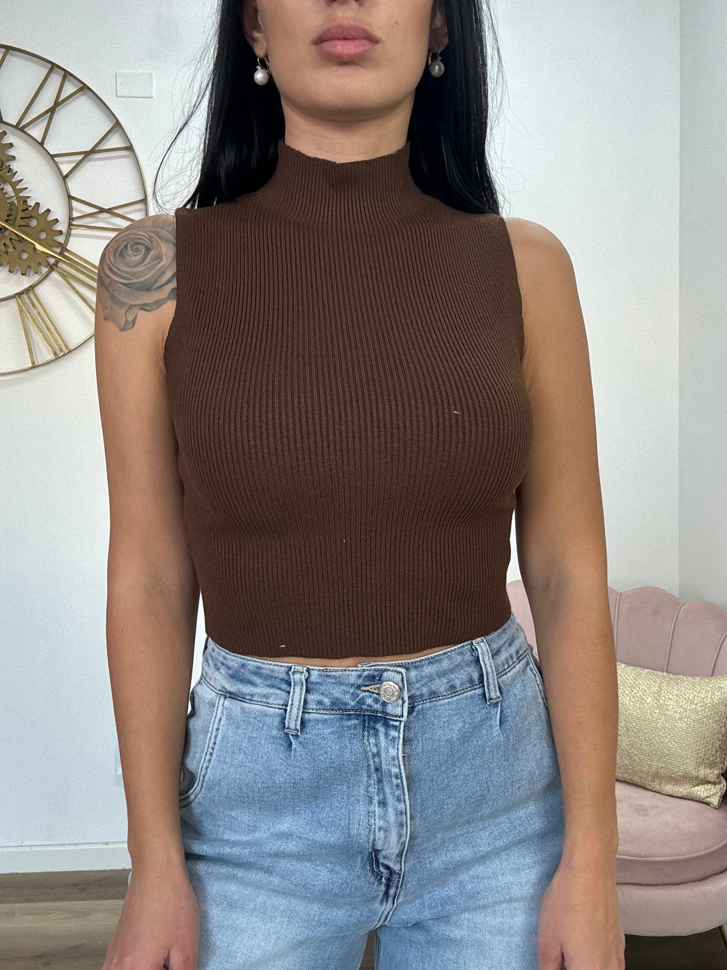 Smanicato caldo e morbido, tessuto a costine, collo alto, elasticizzato, lunghezza all'ombelico. Disponibile in più varianti colore.
