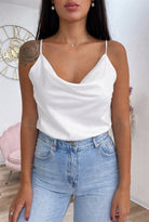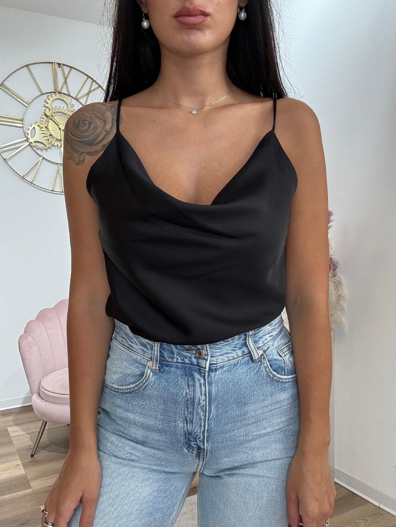 Sottogiacca/canotta in satin con scollo morbido, bretelle elasticizzate, lunghezza normale.