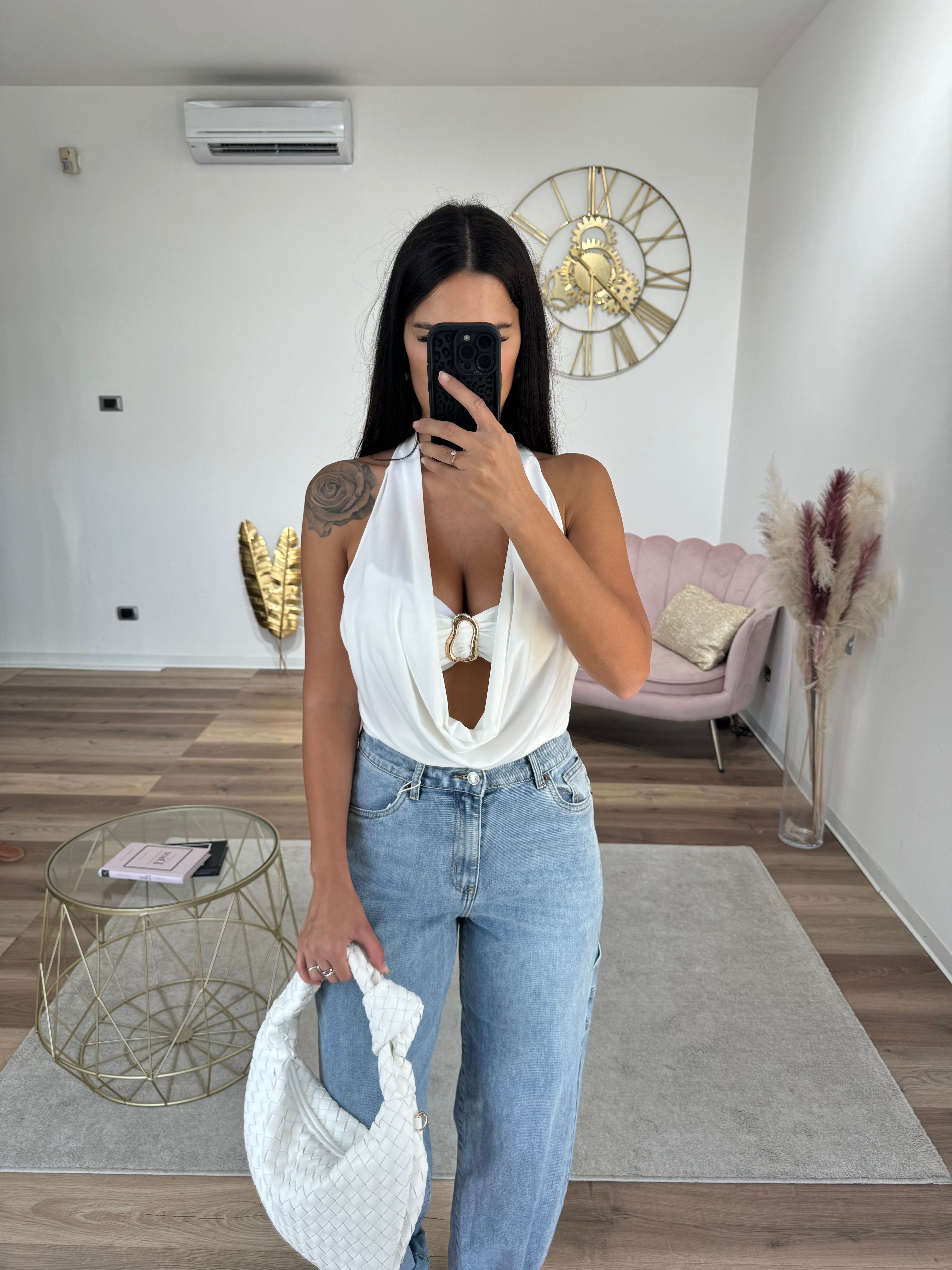 Top con scollo morbido, apertura sul davanti, coppe preformate