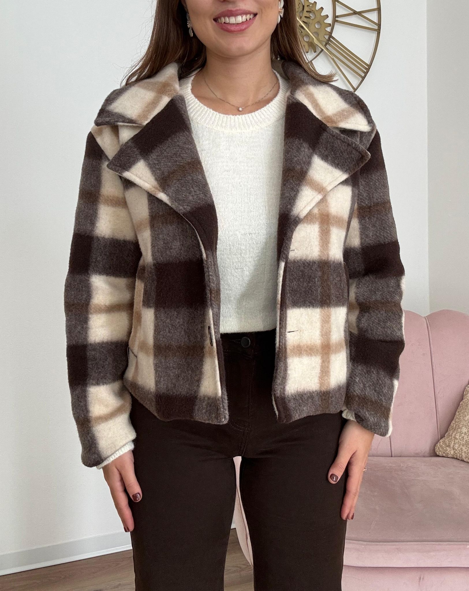 Camicione crop,  chiusura con bottoni,  con tasche, tessuto morbido e caldo