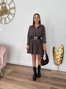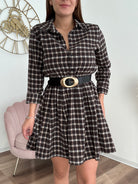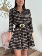 Abito in flanella, caldo e morbido, scende morbido lungo i fianchi, bottoncini regoabili fino a sopra l'ombelico, vita elastica