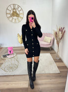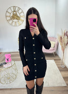 Abito in maglia impreziosito da bottoni dorati, tessuto a costine, elasticizzato