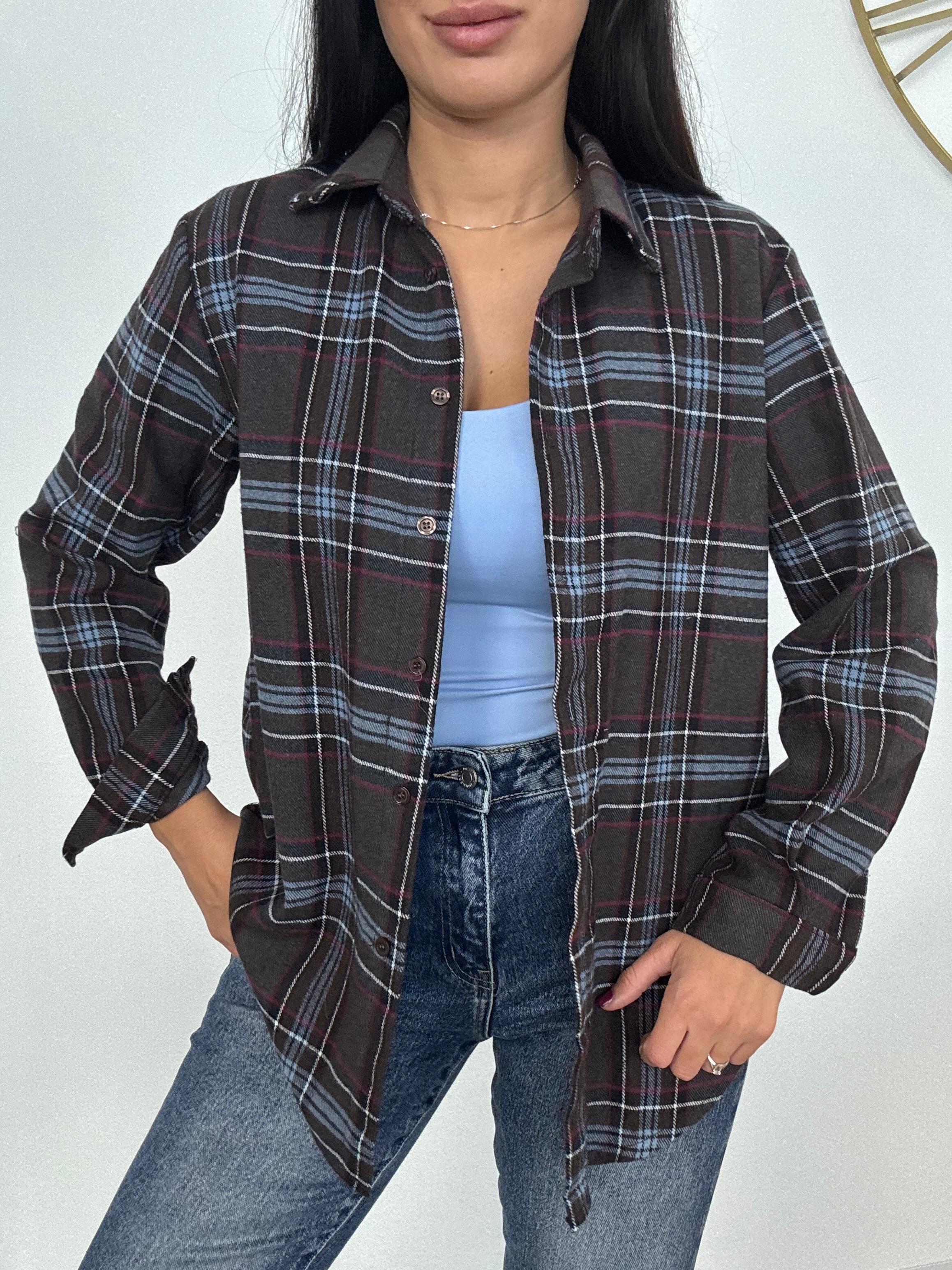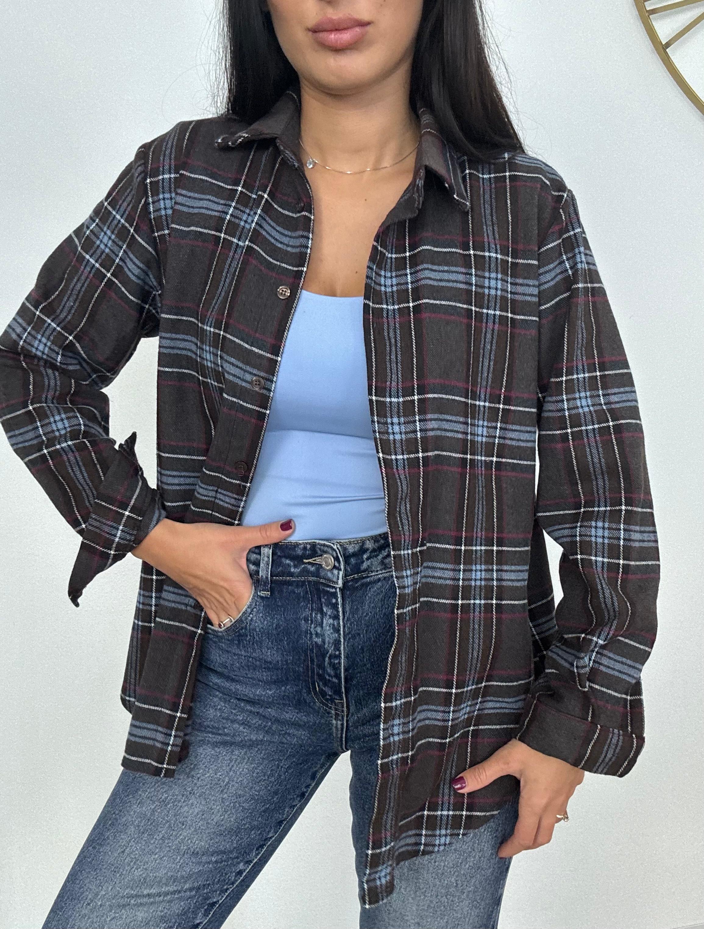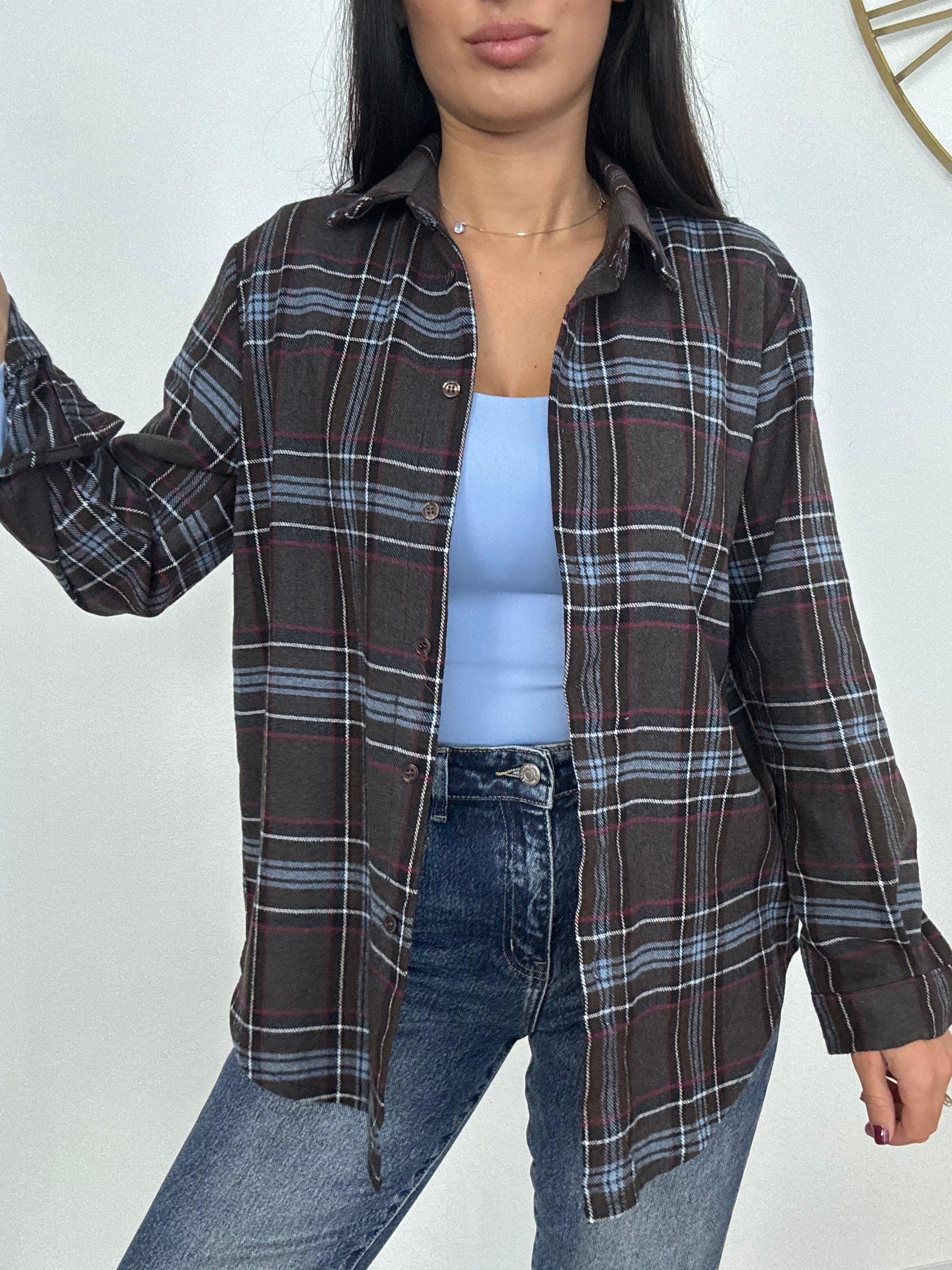 Camicia in cotone flanellato, bottoncini regolabili davanti, lunghezza normale