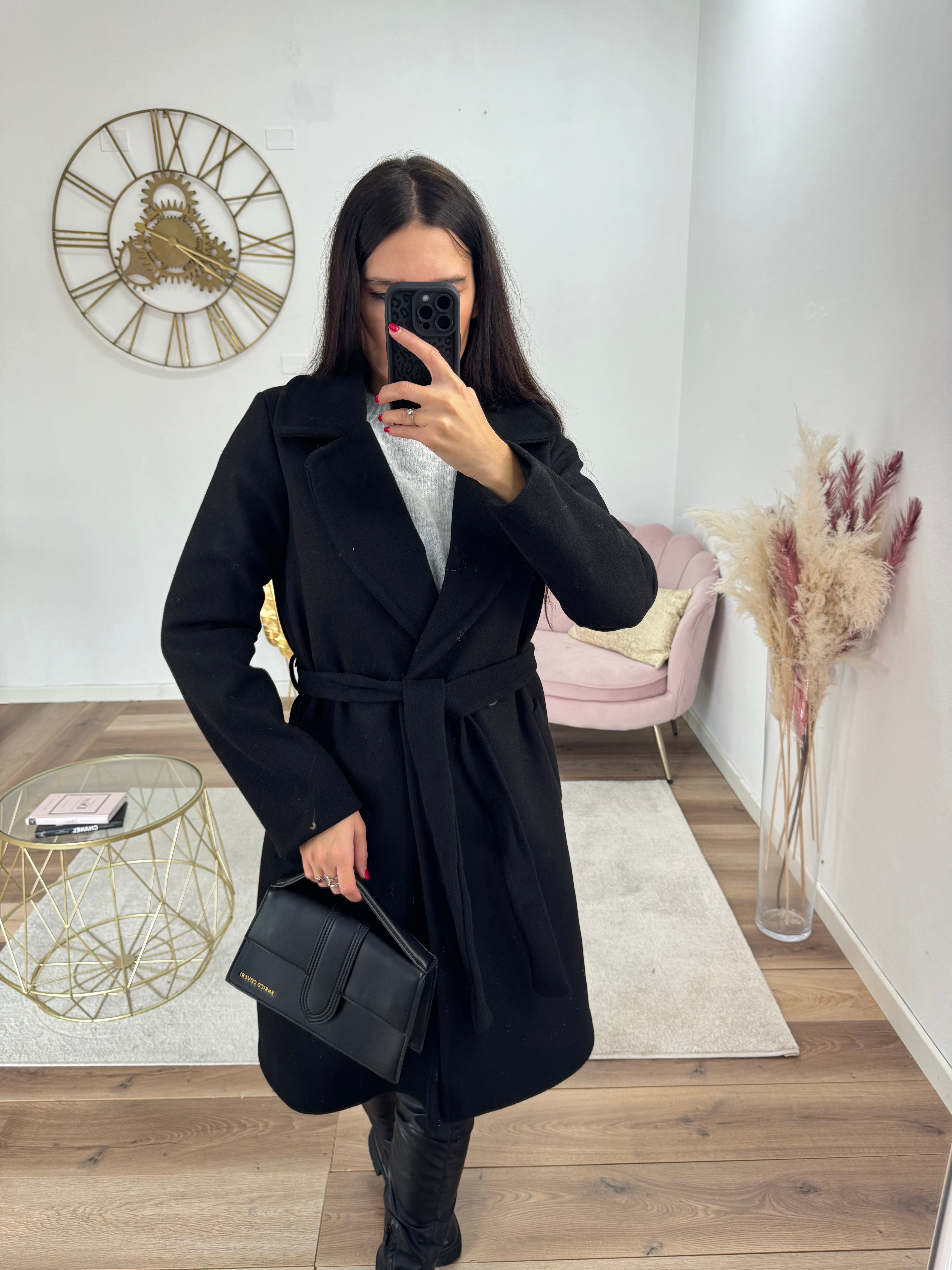 Cappottino morbido e caldo, foderato internamente con bottoni e cinturino della stessa fantasia.
