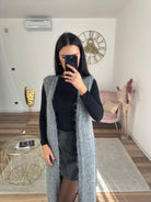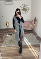 Cardigan lungo caldo e morbido , smanicato, completo di cintura, spacco, elasticizzato