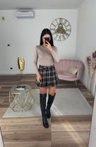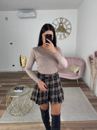 Gonna in flanella, si chiude con zip ed è elasticizzata, completa del suo cinturino
