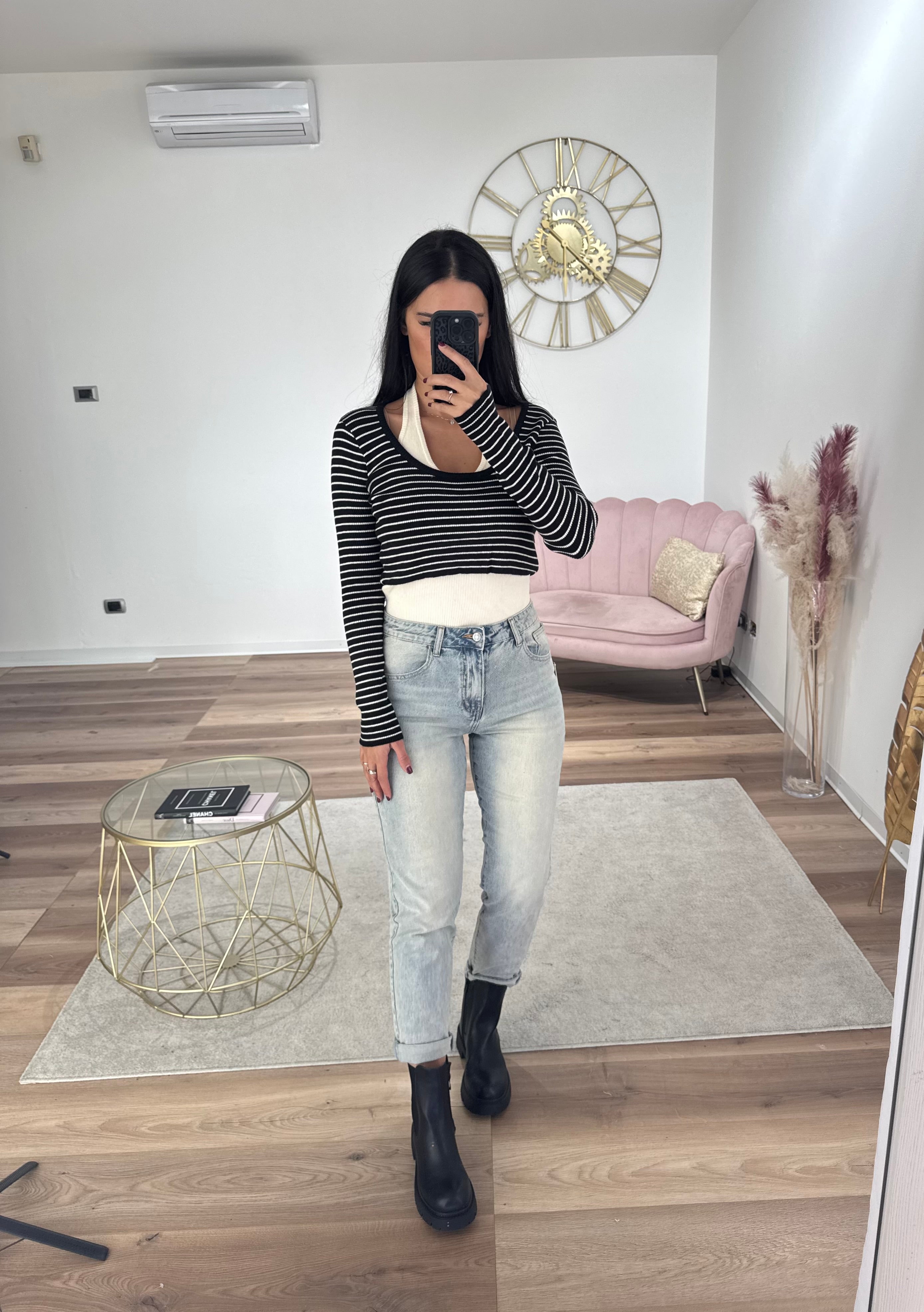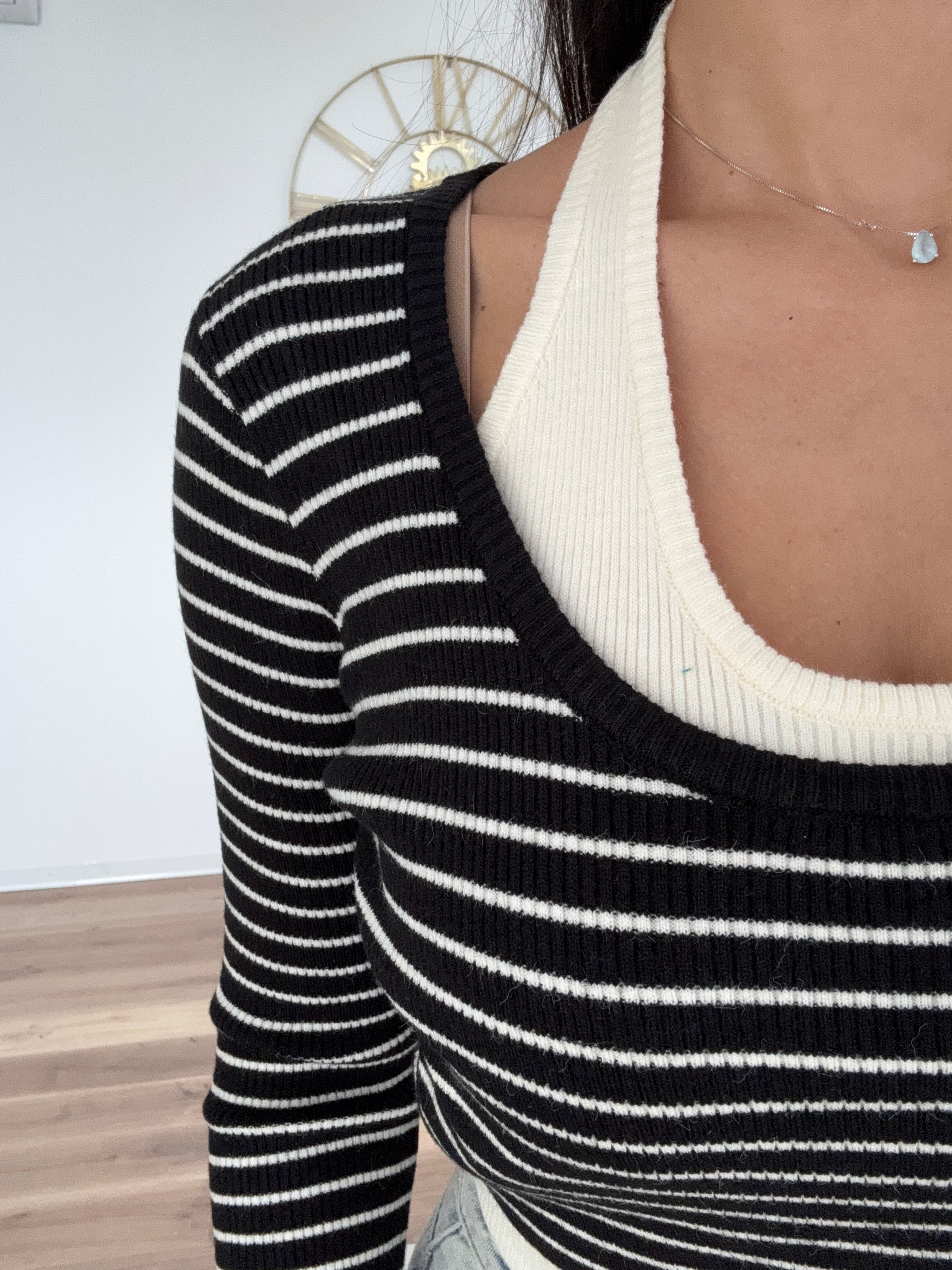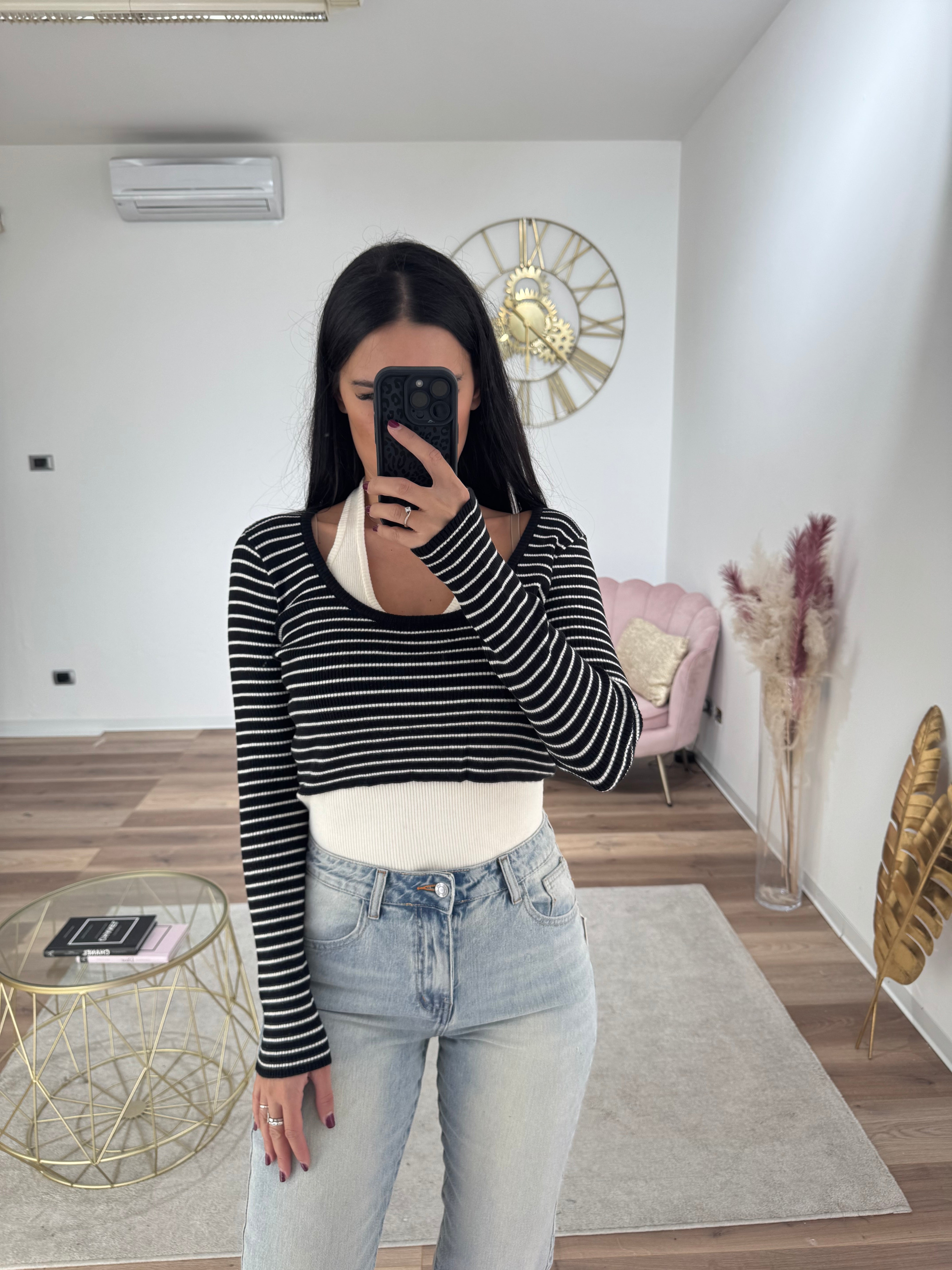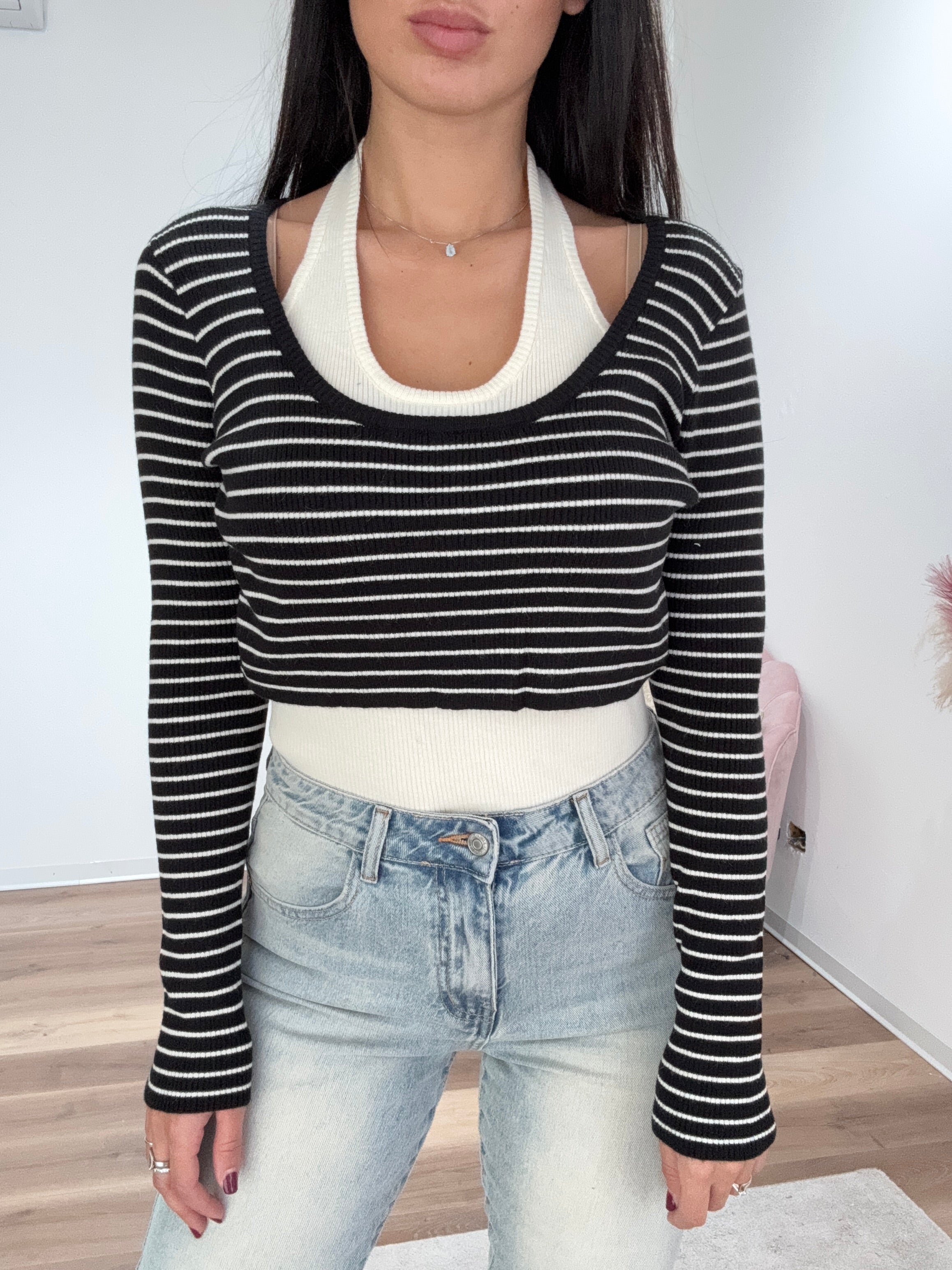 Maglia a righe con top cucito, elasticizzato, lunghezza all'ombelico