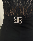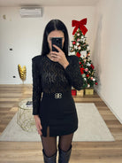 Tutina con strass tono su tono, pantaloncino morbido alla coscia, si chiude al collo ed è completa del suo cinturino