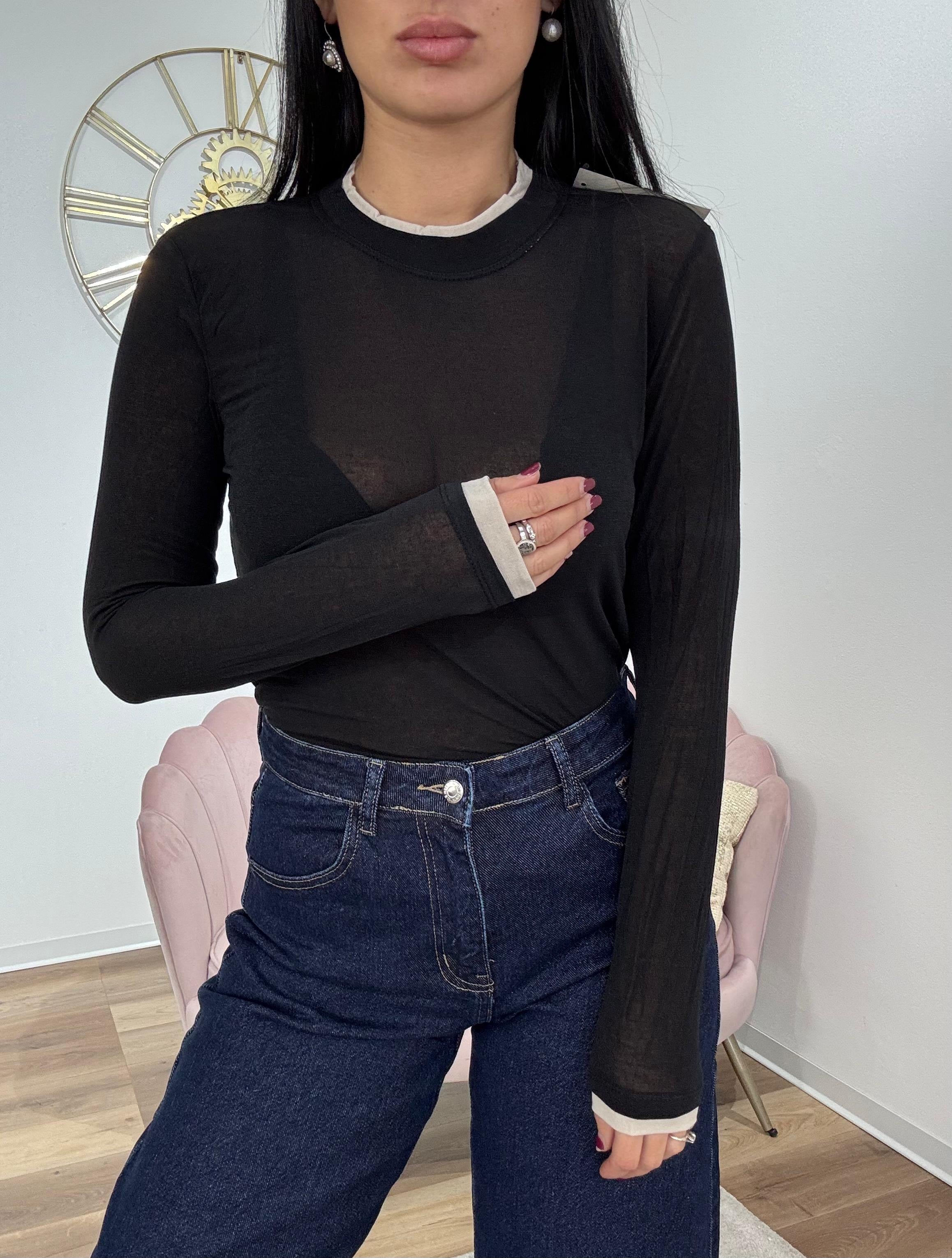 Maglia morbida e calda in misto cashmere, modello effetto seconda maglia, elasticizzata