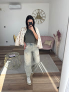 Jeans con Strappi Animalier