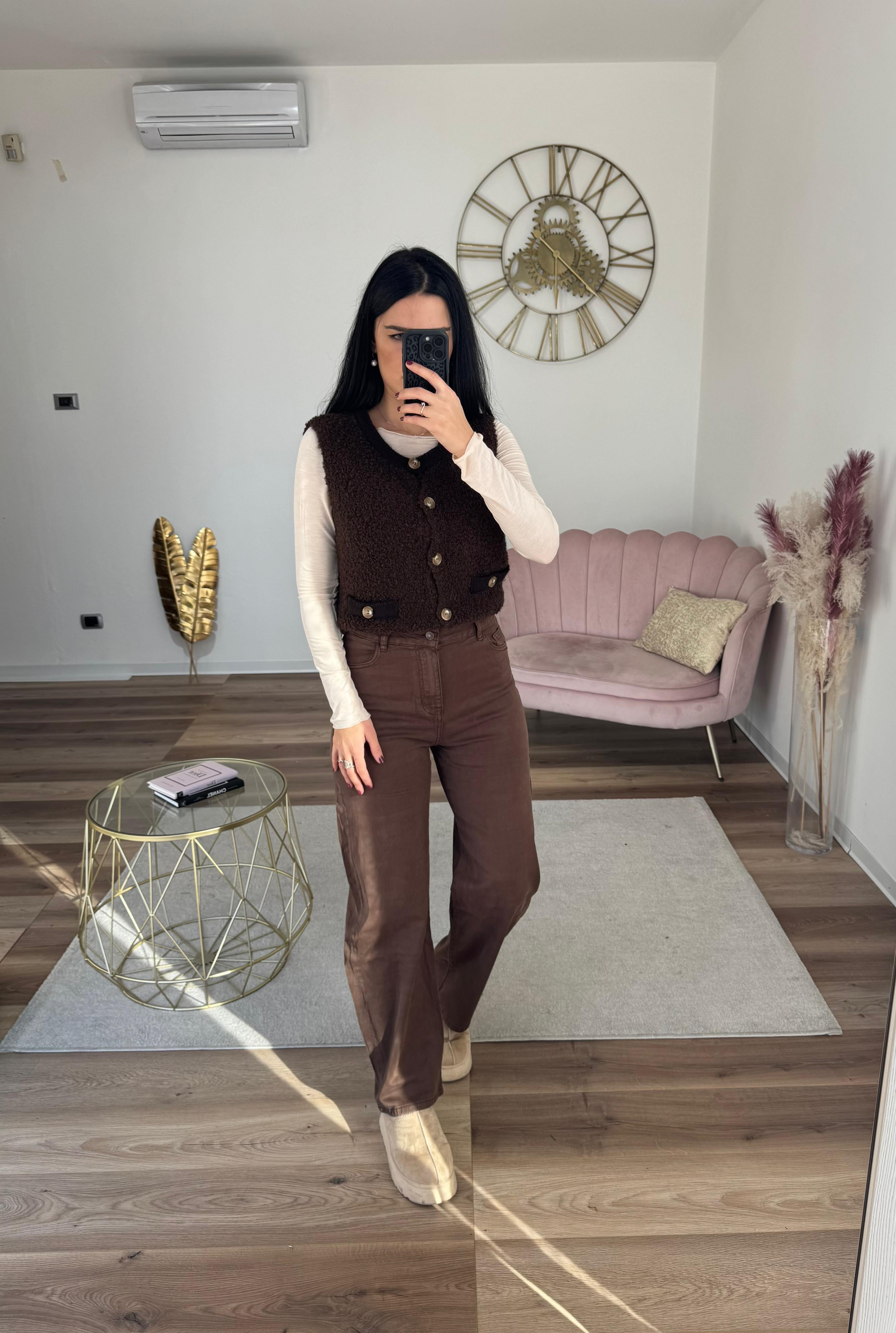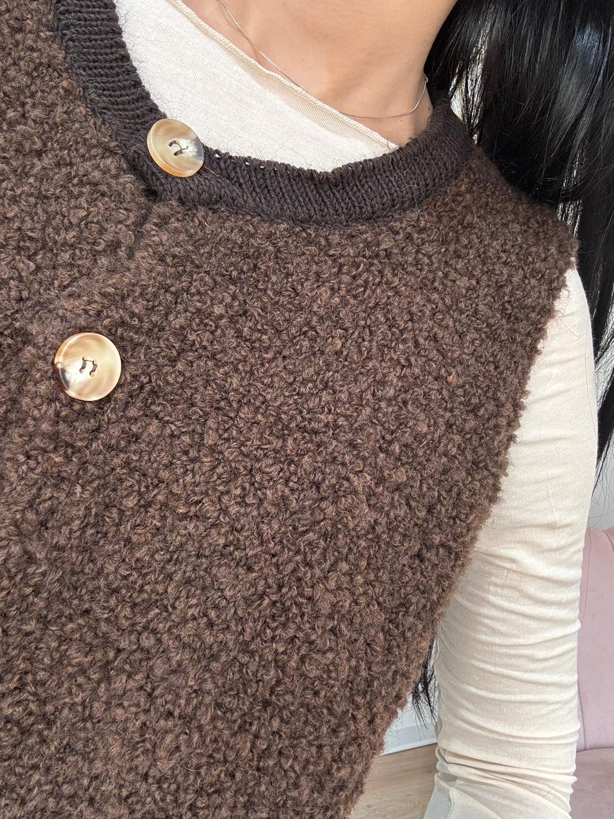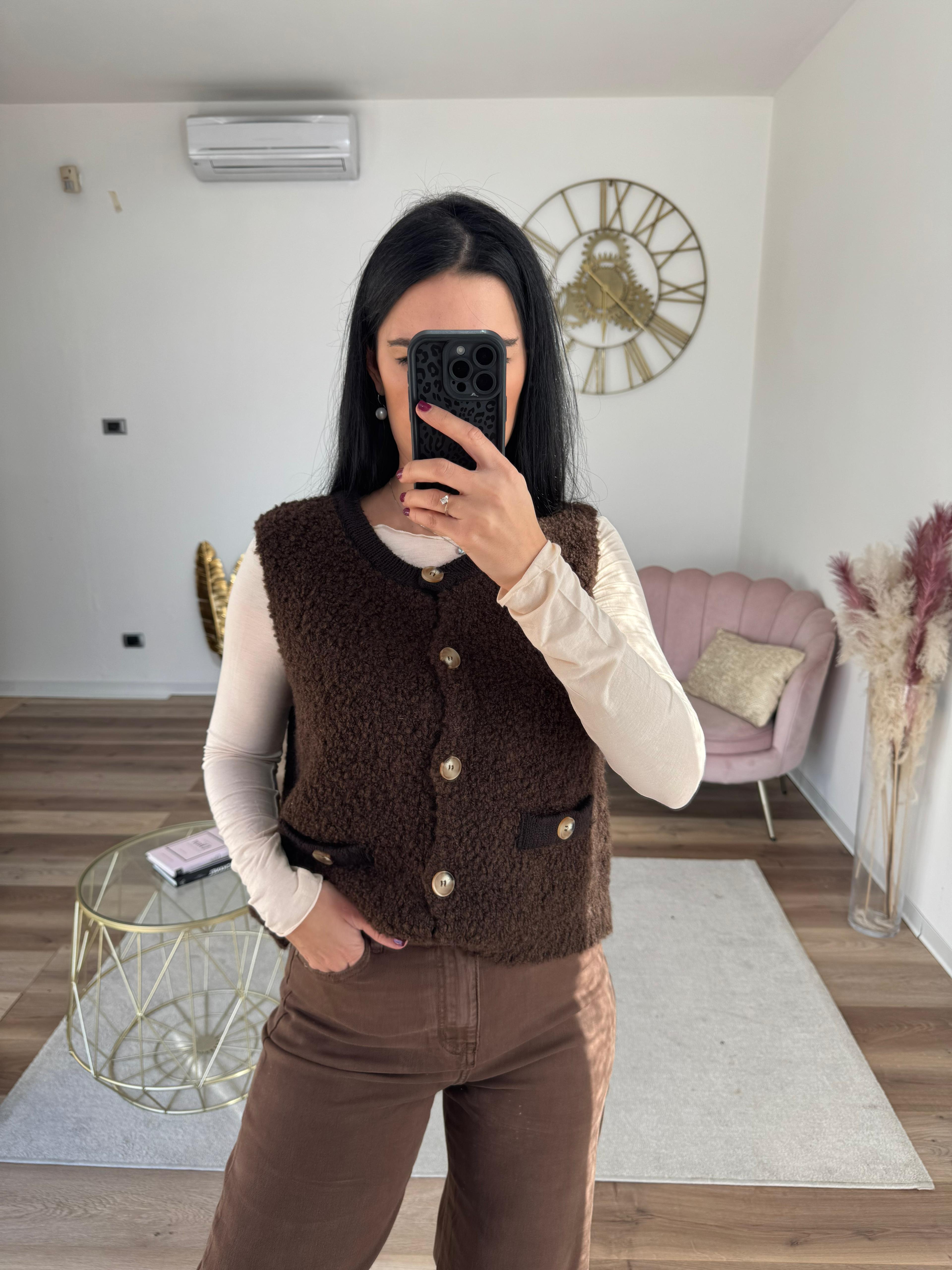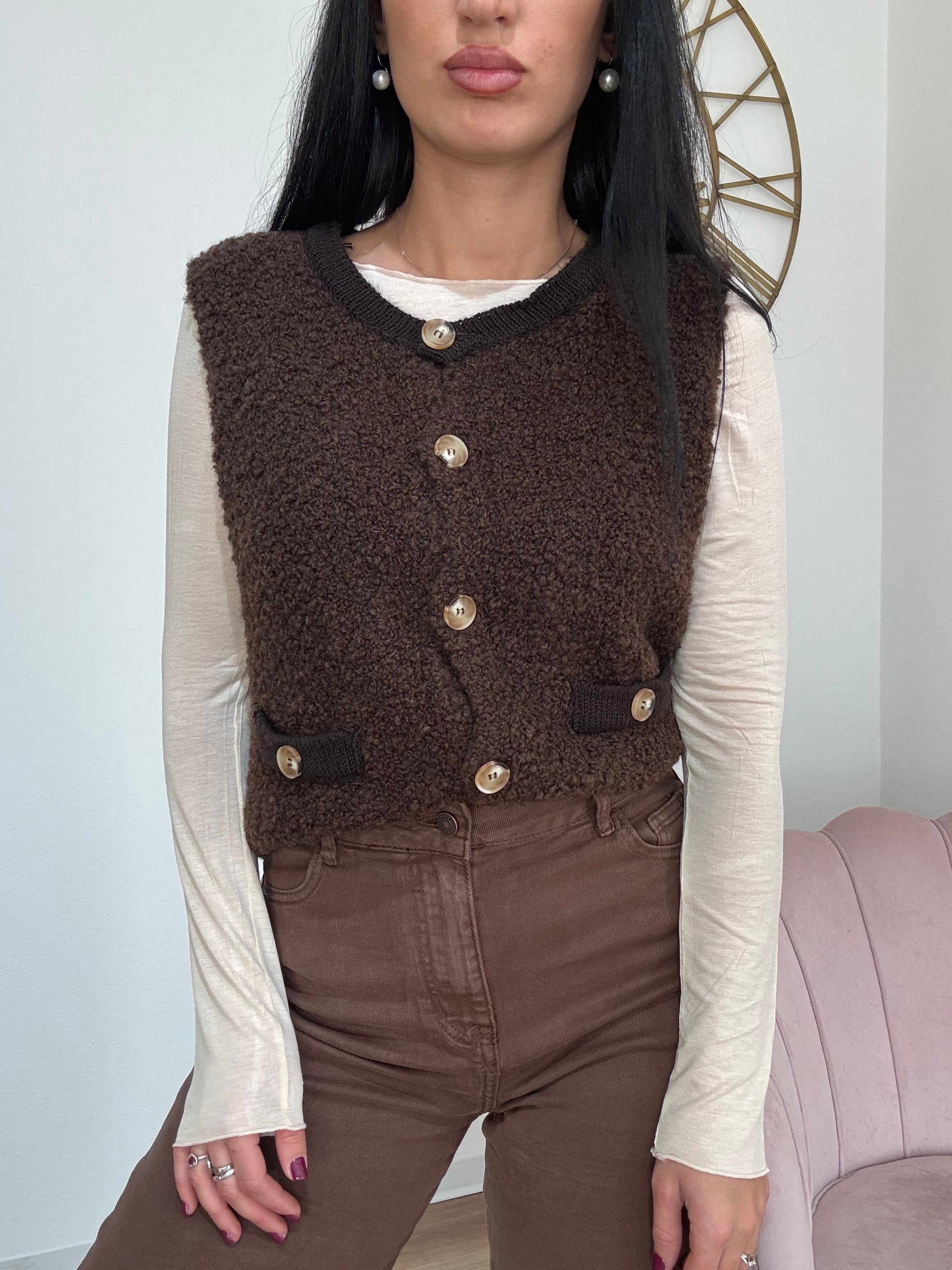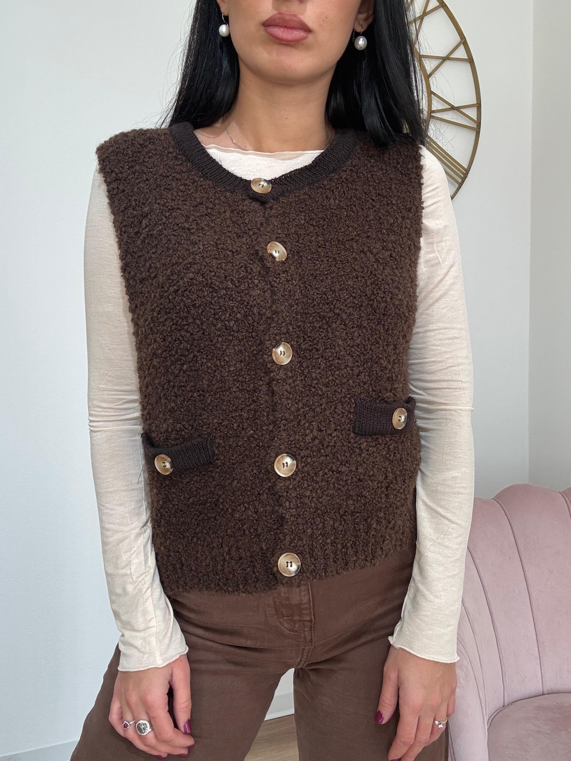 Gilet in bouclè, caldo e morbido,bottoni a contrasto, finte tasche, elasticizzato