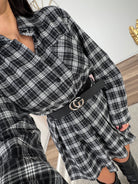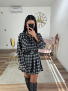 Abito in cotone flanellato, colletto a camicia, bottoncini sul davanti che arrivano sopra all'ombelico, con tasca davanti, scende morbido, completo di cinturino (non quello della foto), scende morbido, vita elastica.