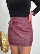 Gonna in ecopelle morbidissima, drappeggio laterale, modello a vita alta, chiusura con zip