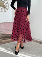Gonna con tulle e sottoveste, fantasia cuoricini in rilievo di velluto, vita alta ed elastica.