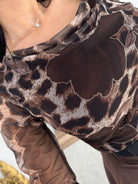Maglia velata, con parte davanti coperta, elasticizzata, scollo particolare, lunghezza normale