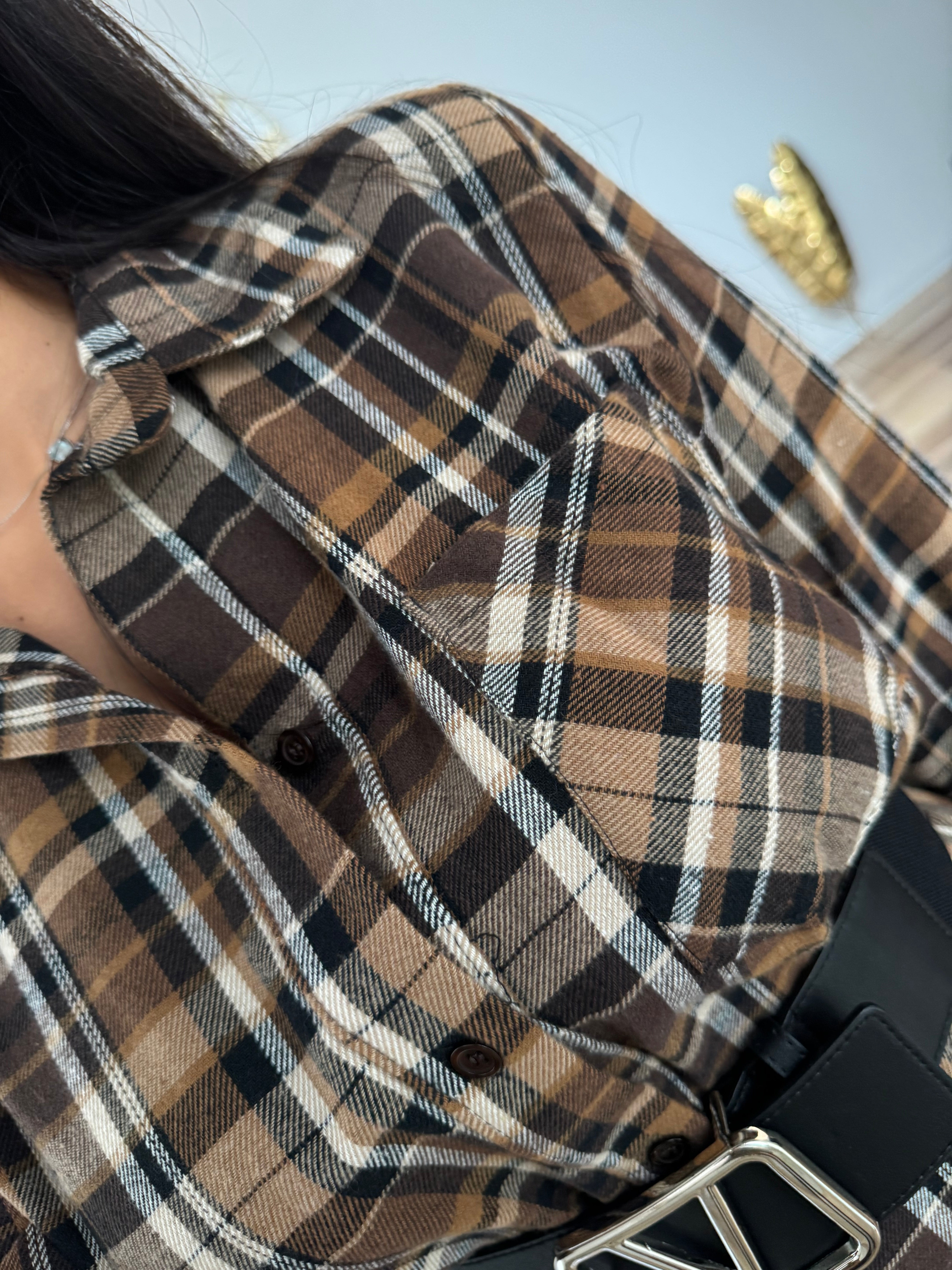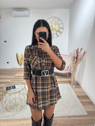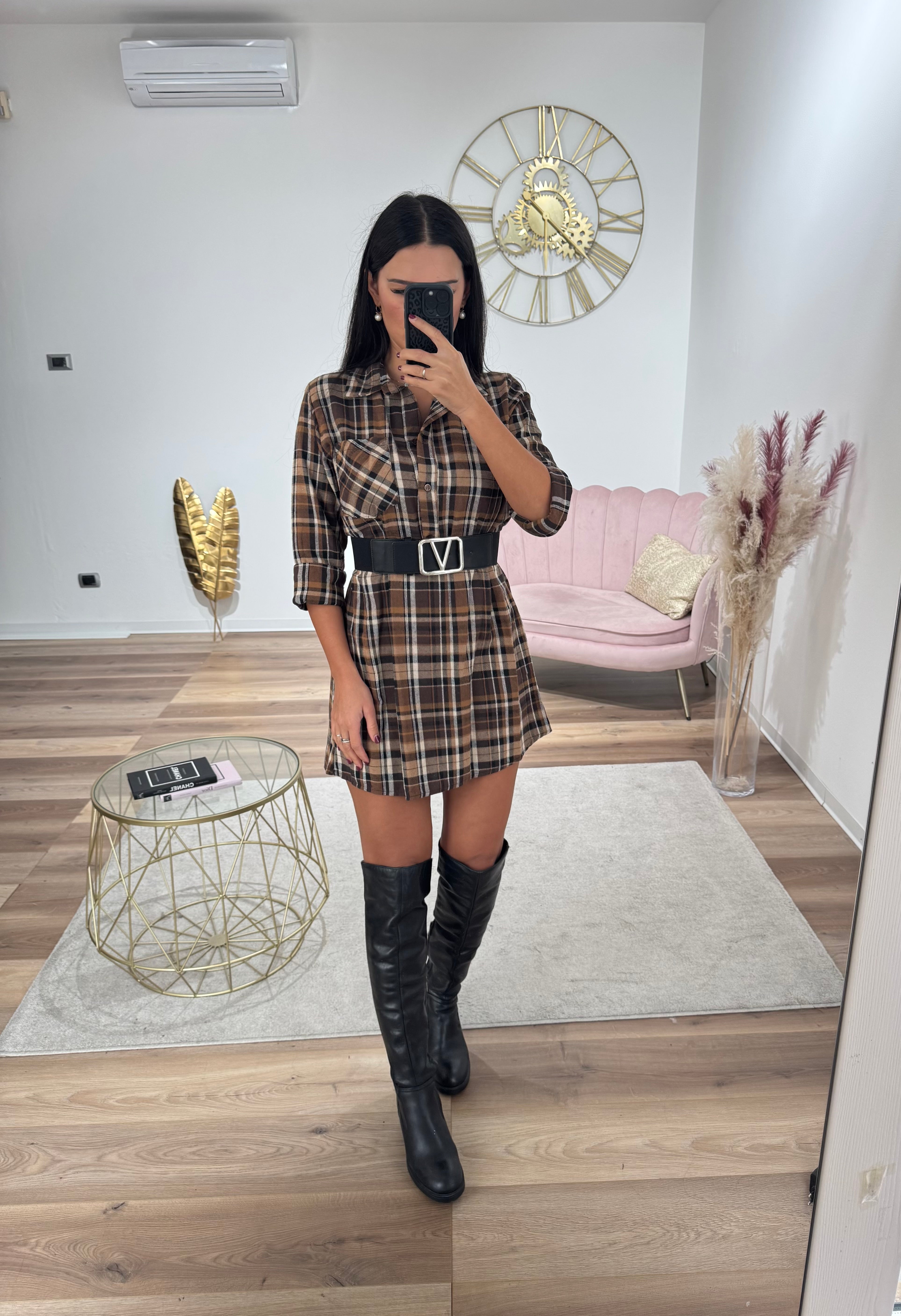 Abito a camicia fantasia a quadri, morbido lungo i fianchi, parte superiore con bottoncini regolabili, completo di mini cinturino