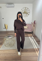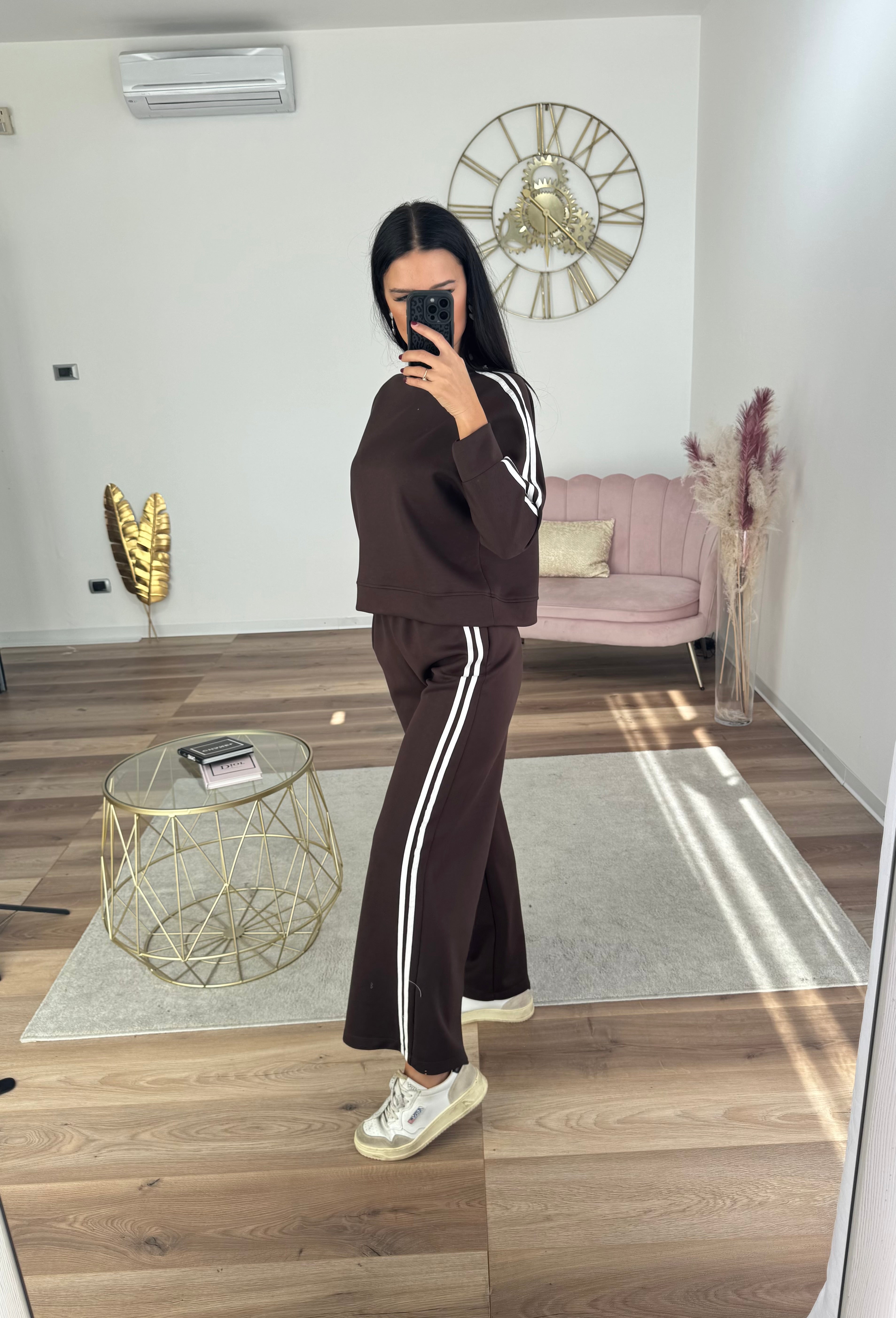 Tuta con banda laterale simil adidas, comodissima, pantalone palazzo con vita arricciata ed elastica, felpa non felpata internamente.
