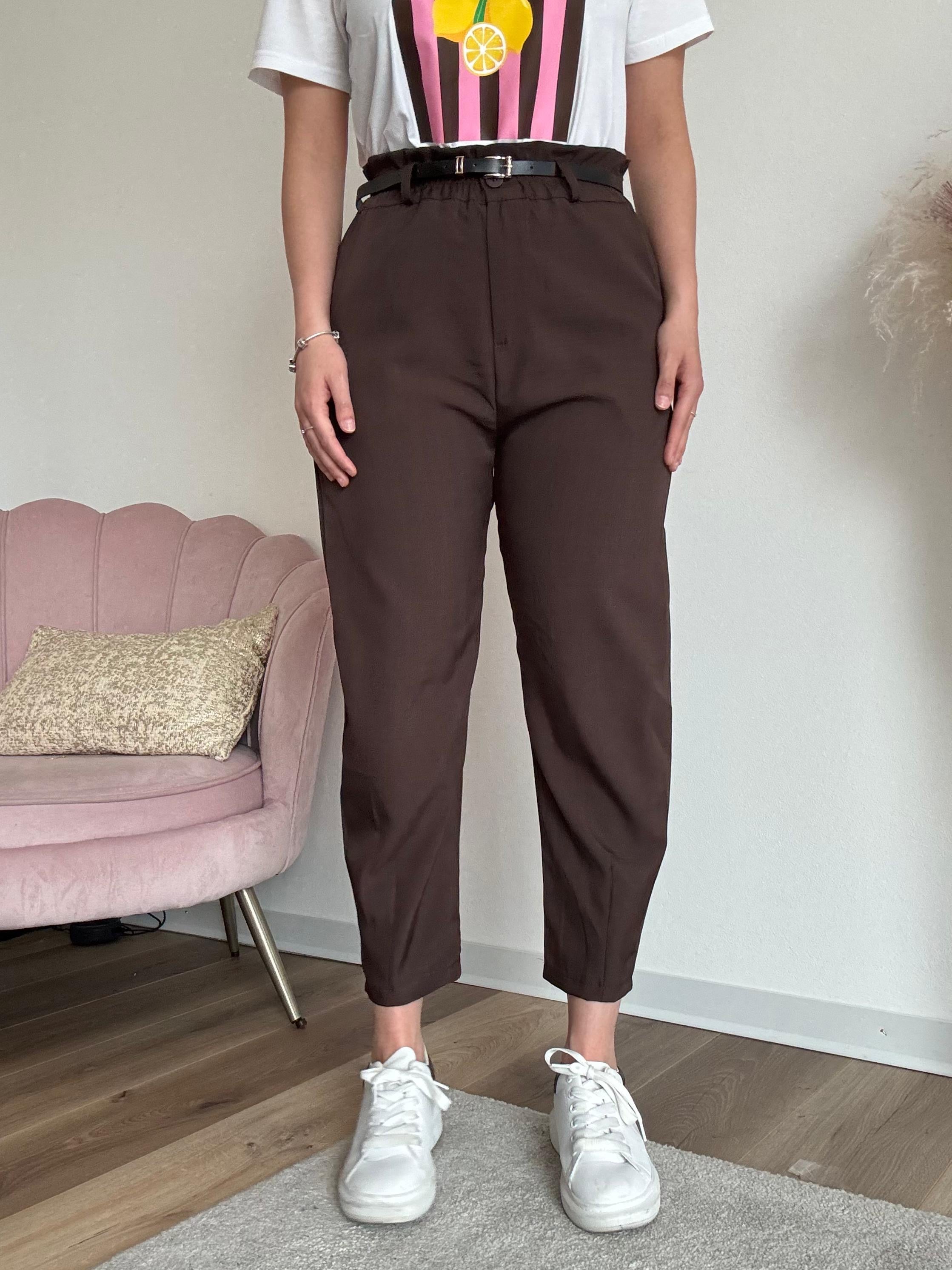 Pantalone completo di cinturino, con tasche, morbido alla coscia, vita elastica