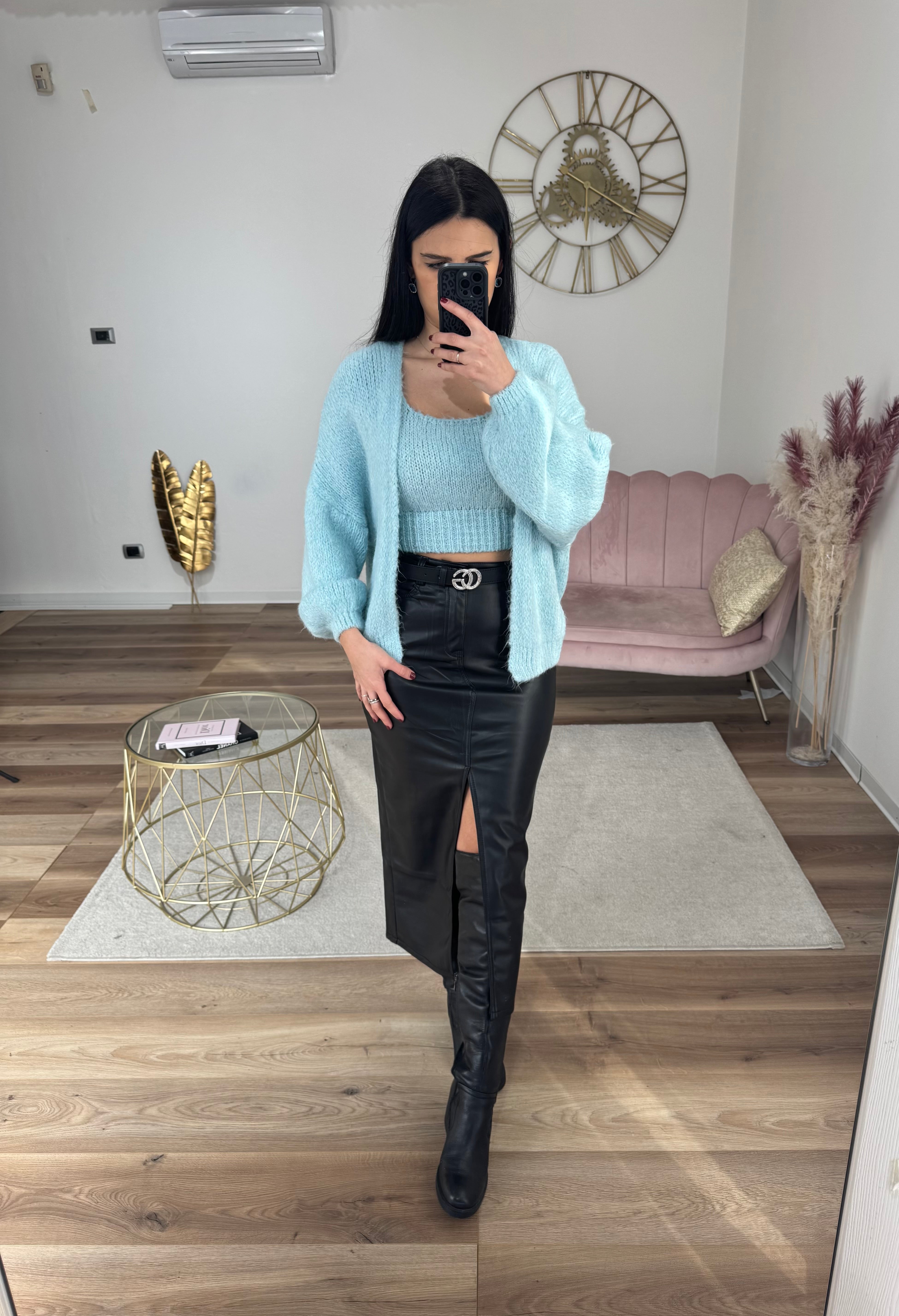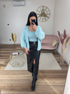 Gonna in ecopelle morbidissima, modello a vita alta, spacco davanti, internamente felpata leggermente, va a taglie