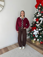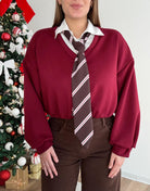 Felpa felpata internamente calda e morbidissima, colletto a camicia con bottoncini regolabili, cravatta removibile, elastico nel fondo