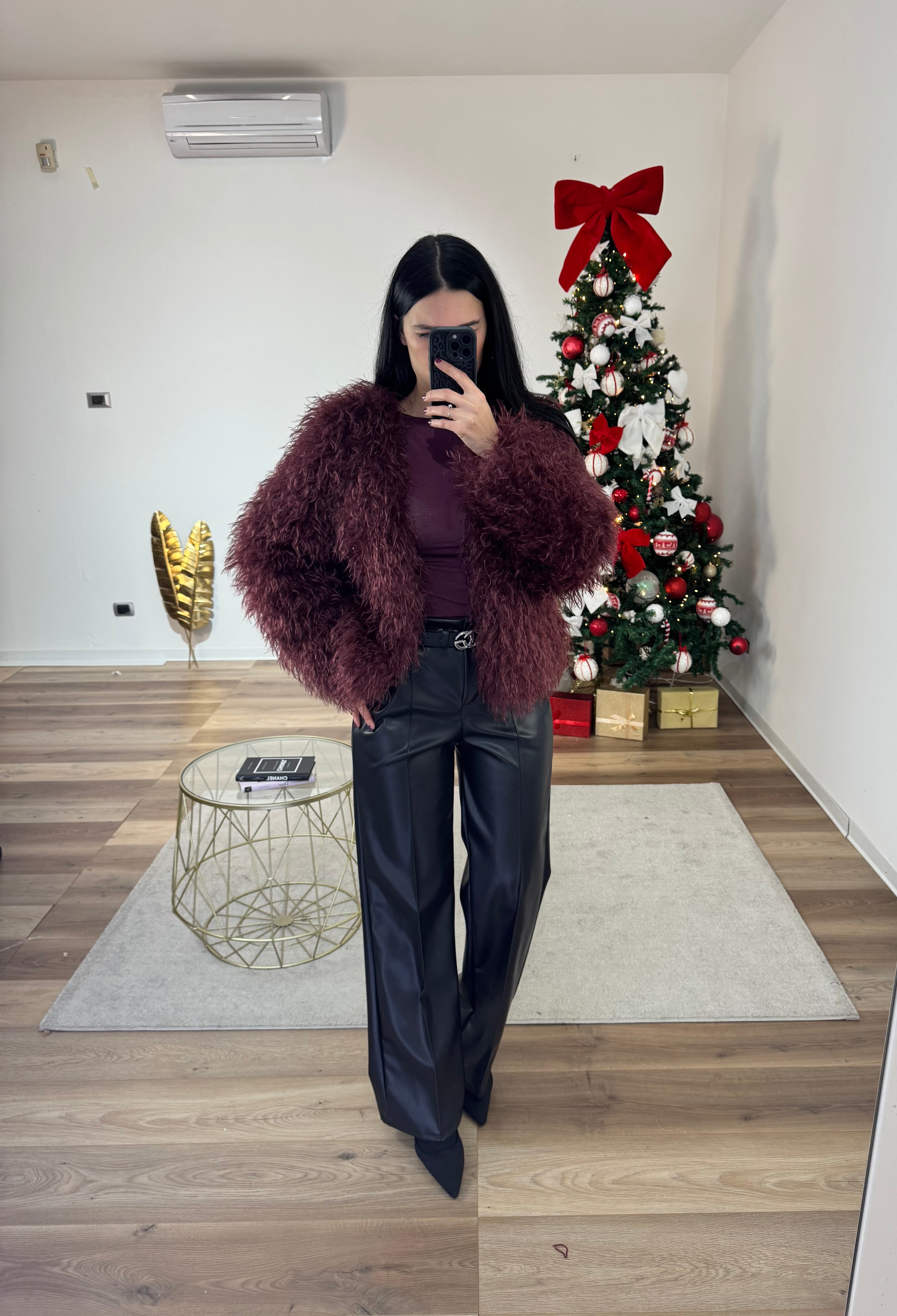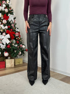 Pantalone modello a palazzo, in ecopelle, vita elastica veste da Tg S/M a L