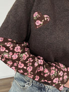 Pull morbido e caldo, lunghezza normale , elasticizzato, maniche a camicia in velluto fantasia floreale