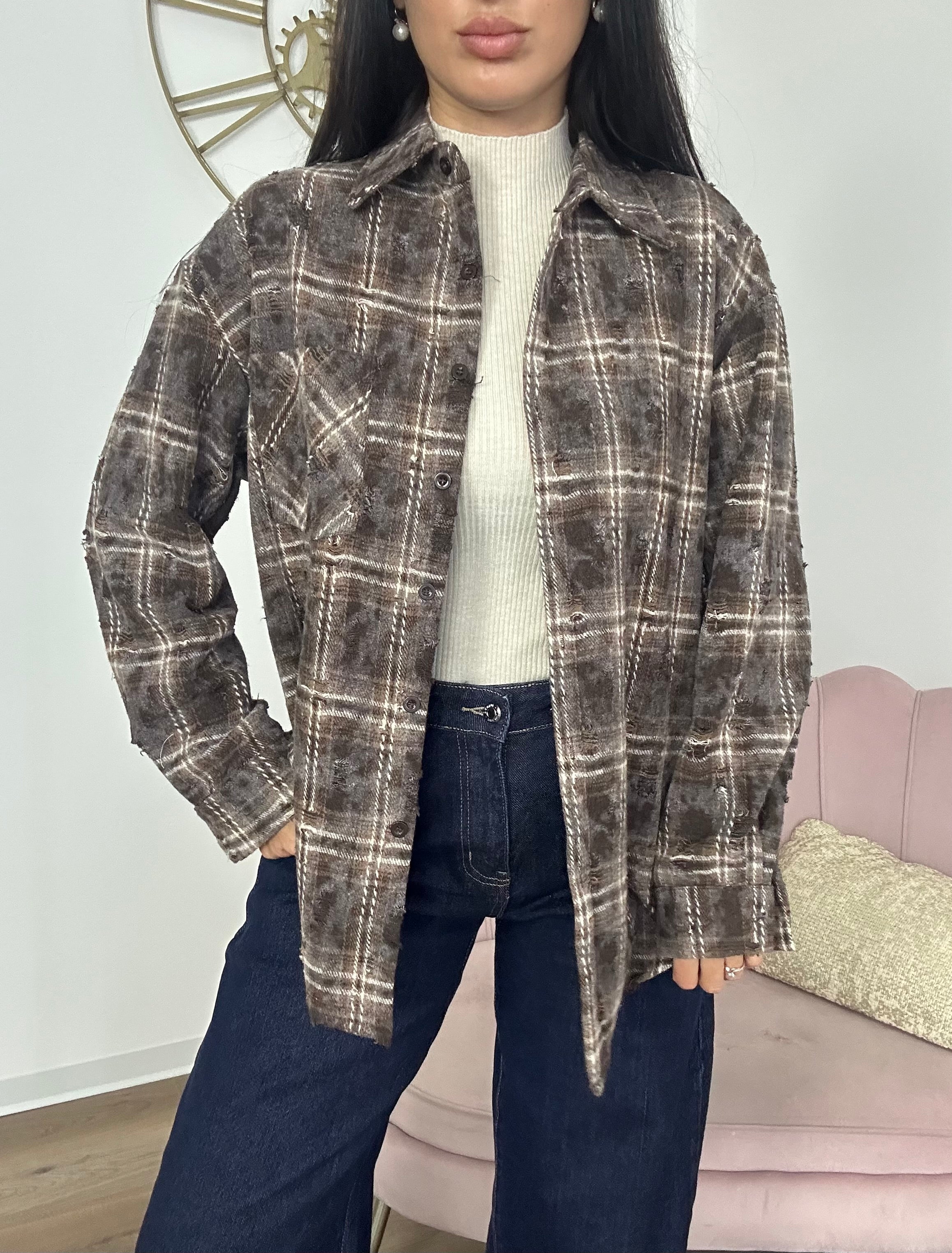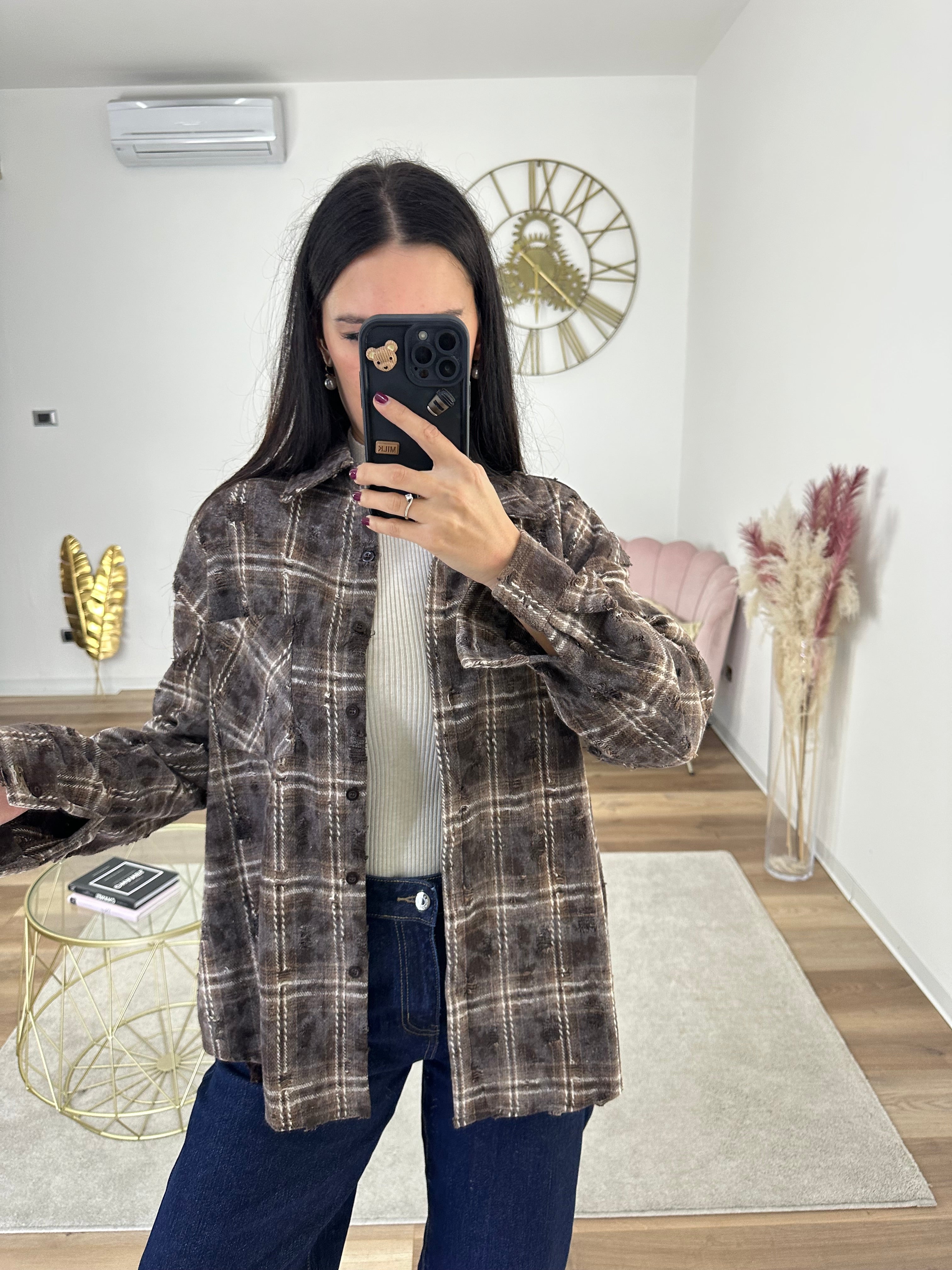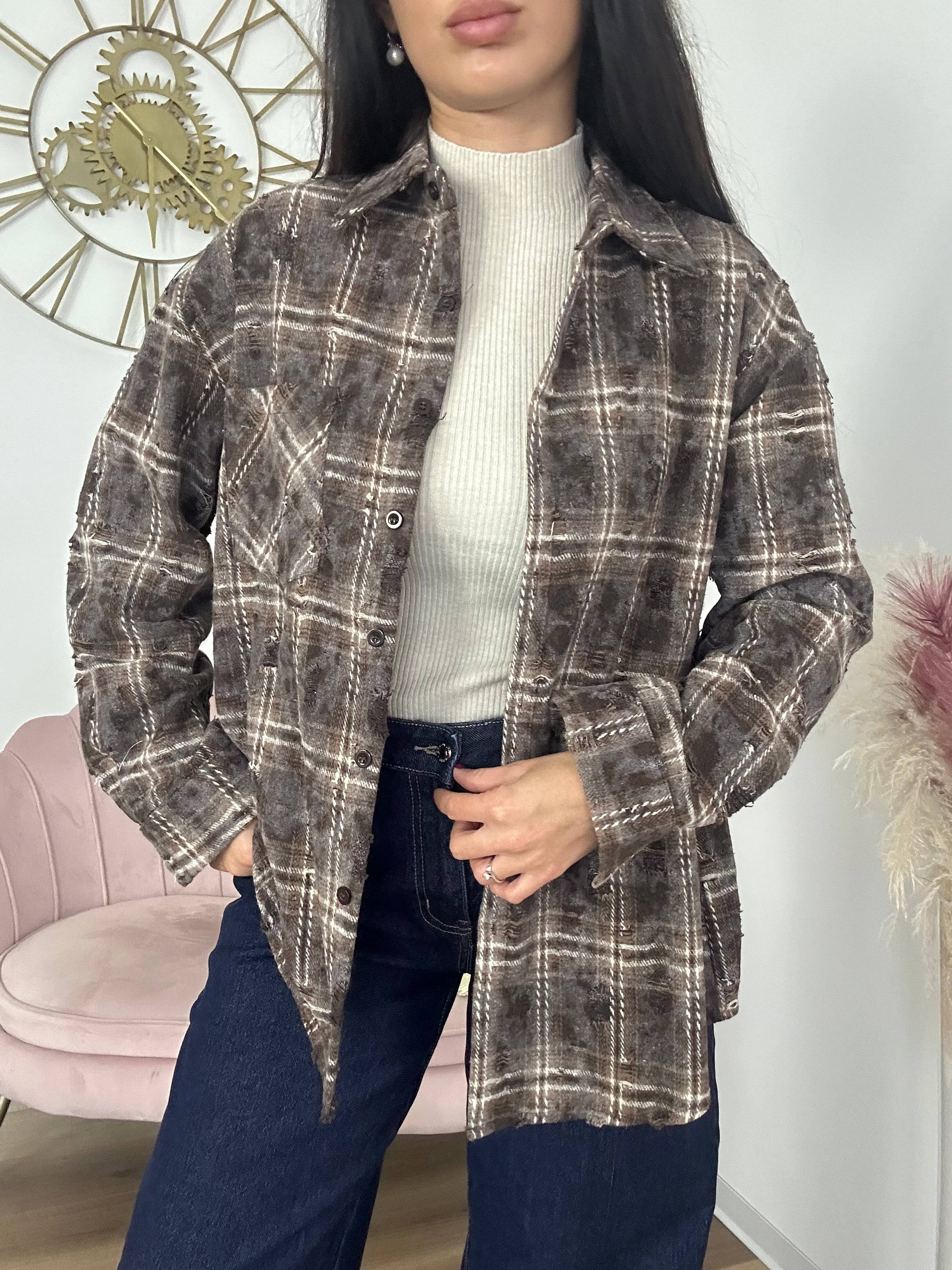 Camicia in cotone flanellato, bottoncini regolabili davanti, lunghezza normale
