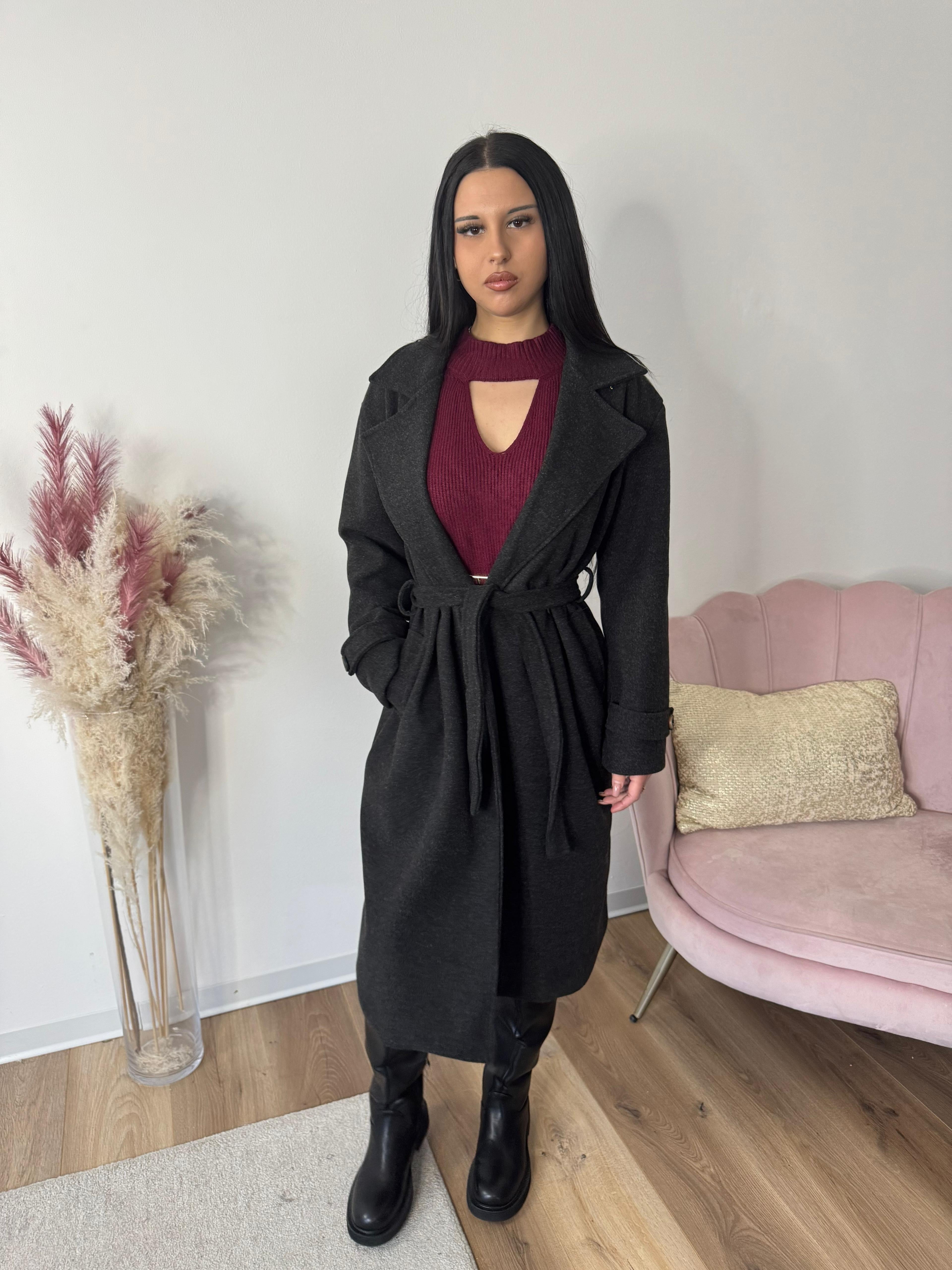 Cappottino lungo morbido e caldo, foderato internamente con tasche.