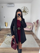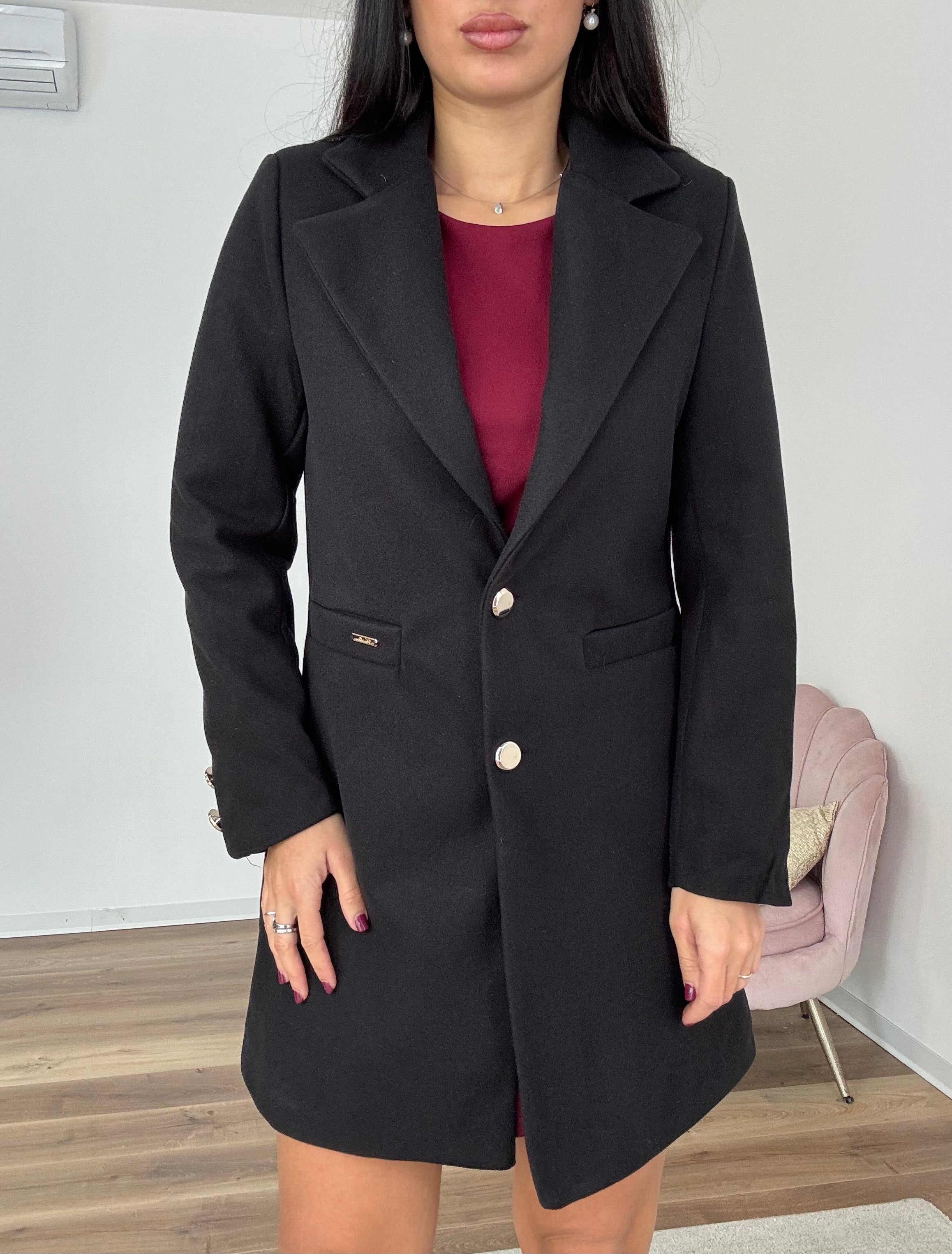 Cappotto sfiancato con bottoni dorati, finte tasche, foderato internamente