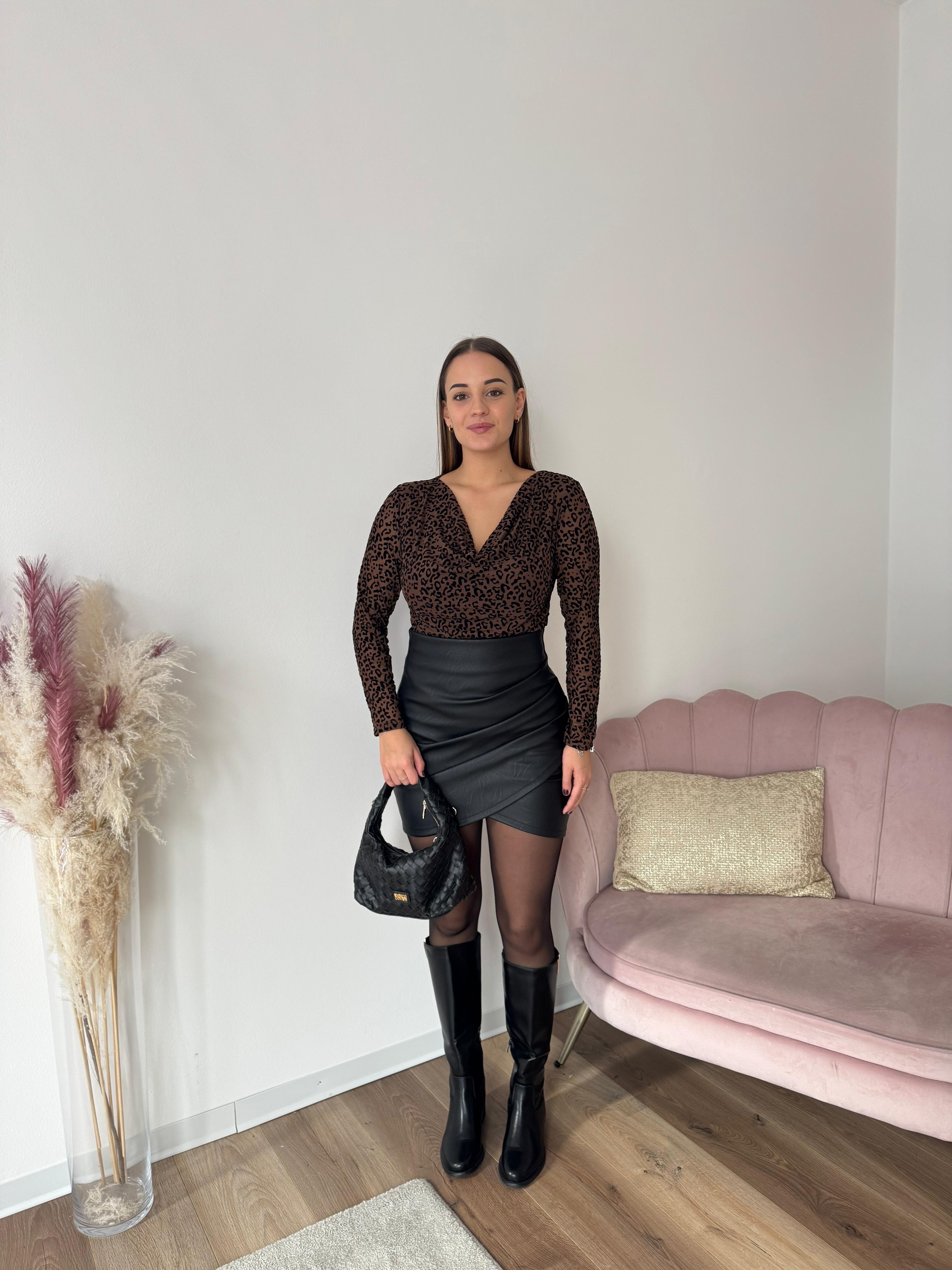 Maglia in fantasia in rilievo vellutata, lunghezza all'ombelico, elasticizzata