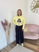 Pull caldo e morbido, grafica con teddy in rilievo simil Ralph Lauren, elasticizzato, lunghezza normale