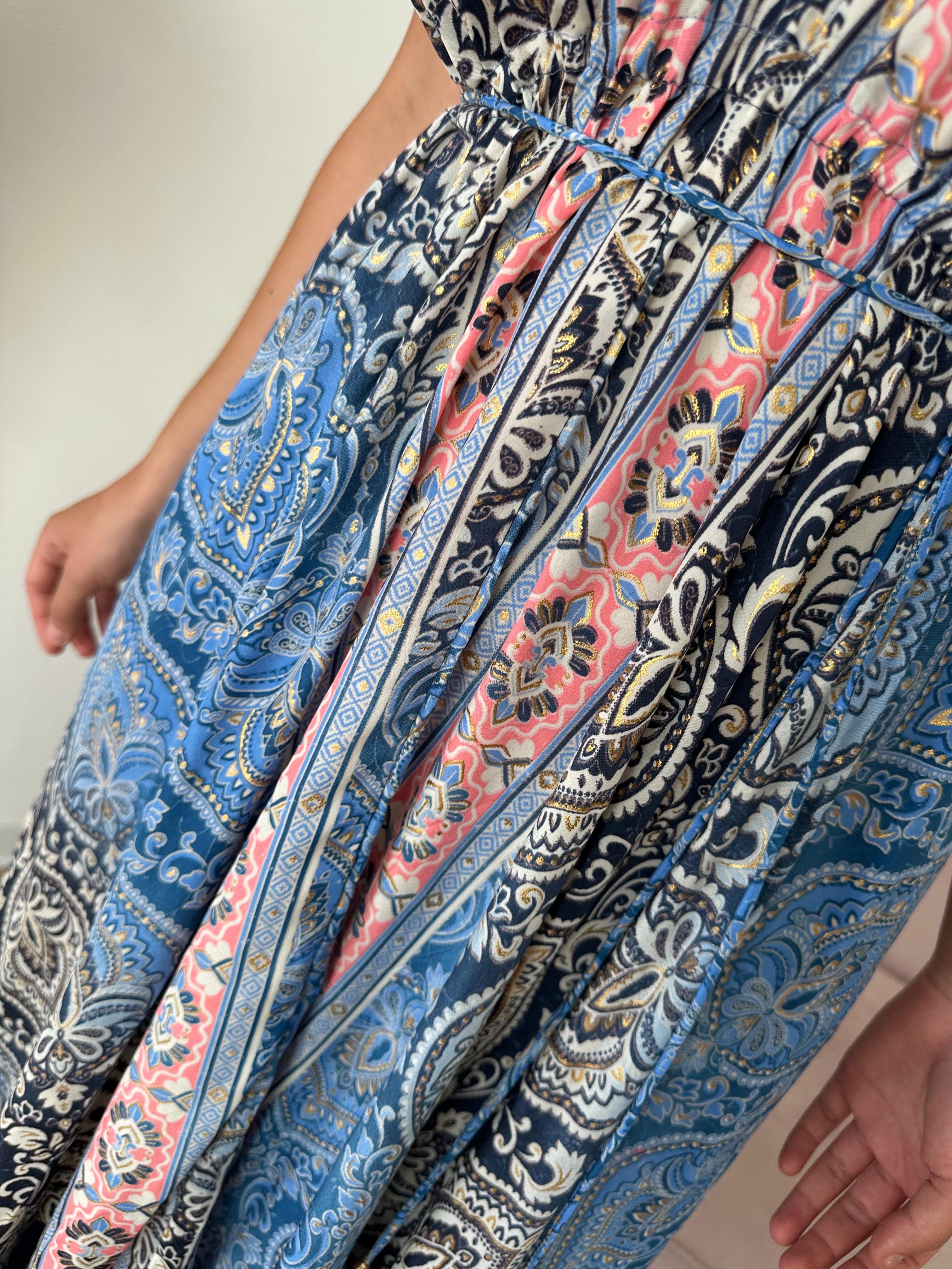 Abito con scollo profondo, si chiude Al collo, coulisse regolabile in base alla taglia, schiena scoperta