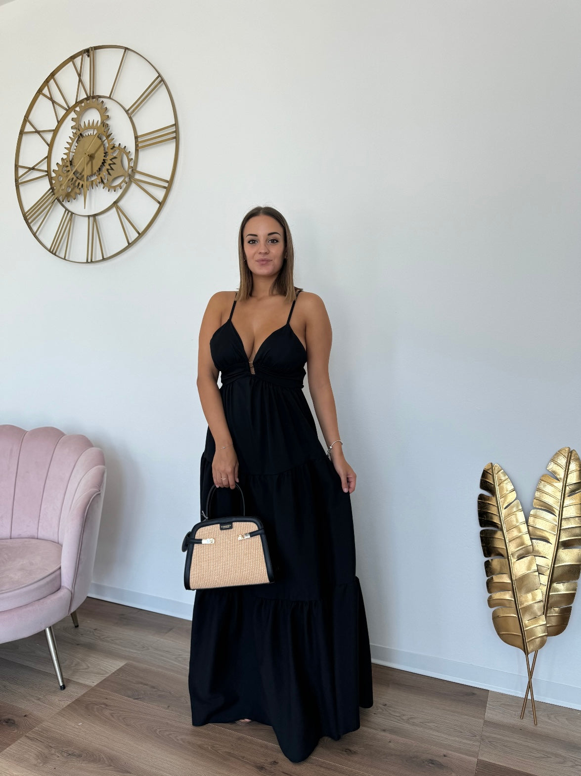 abito in viscosa, scollo profondo, coppe preformate, schiena scoperta, vita elastica, veste fino taglia L