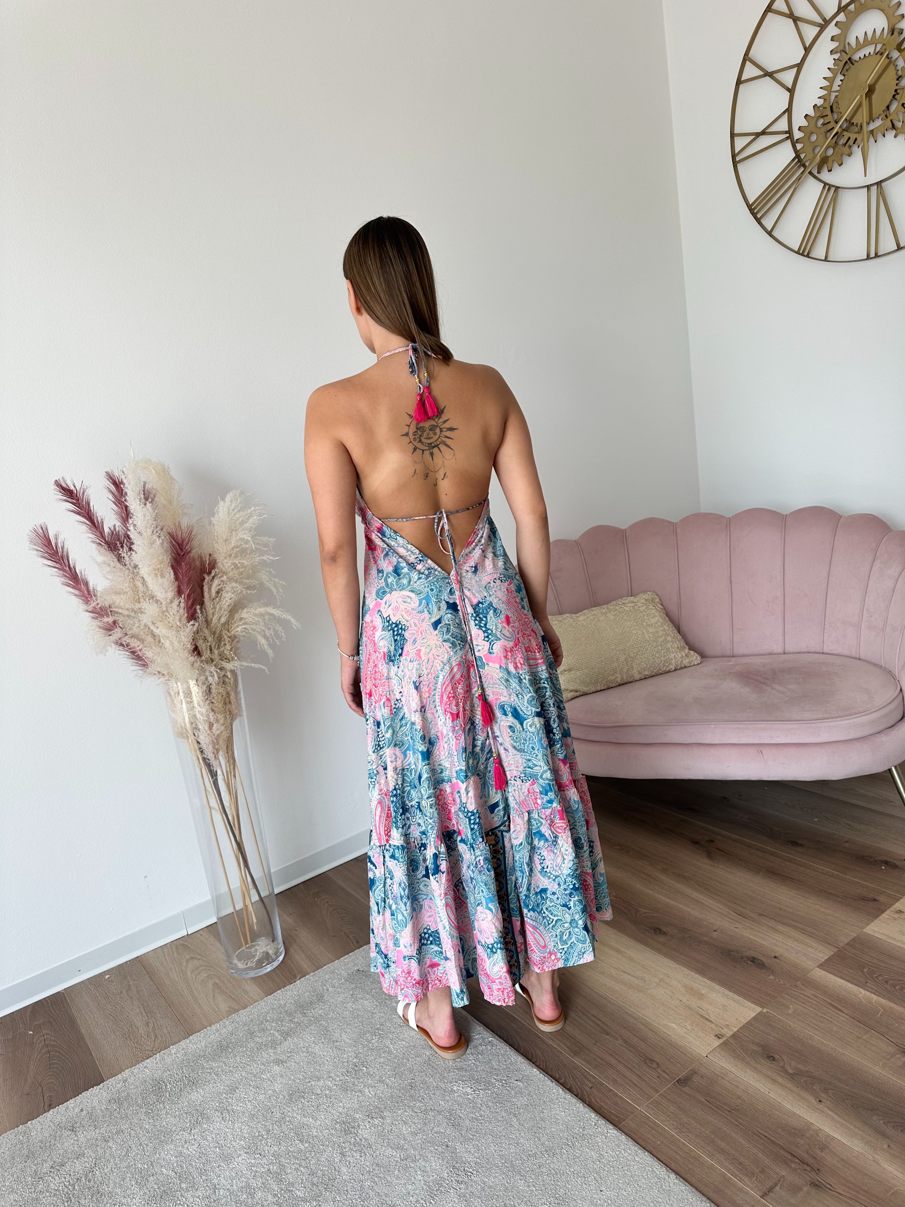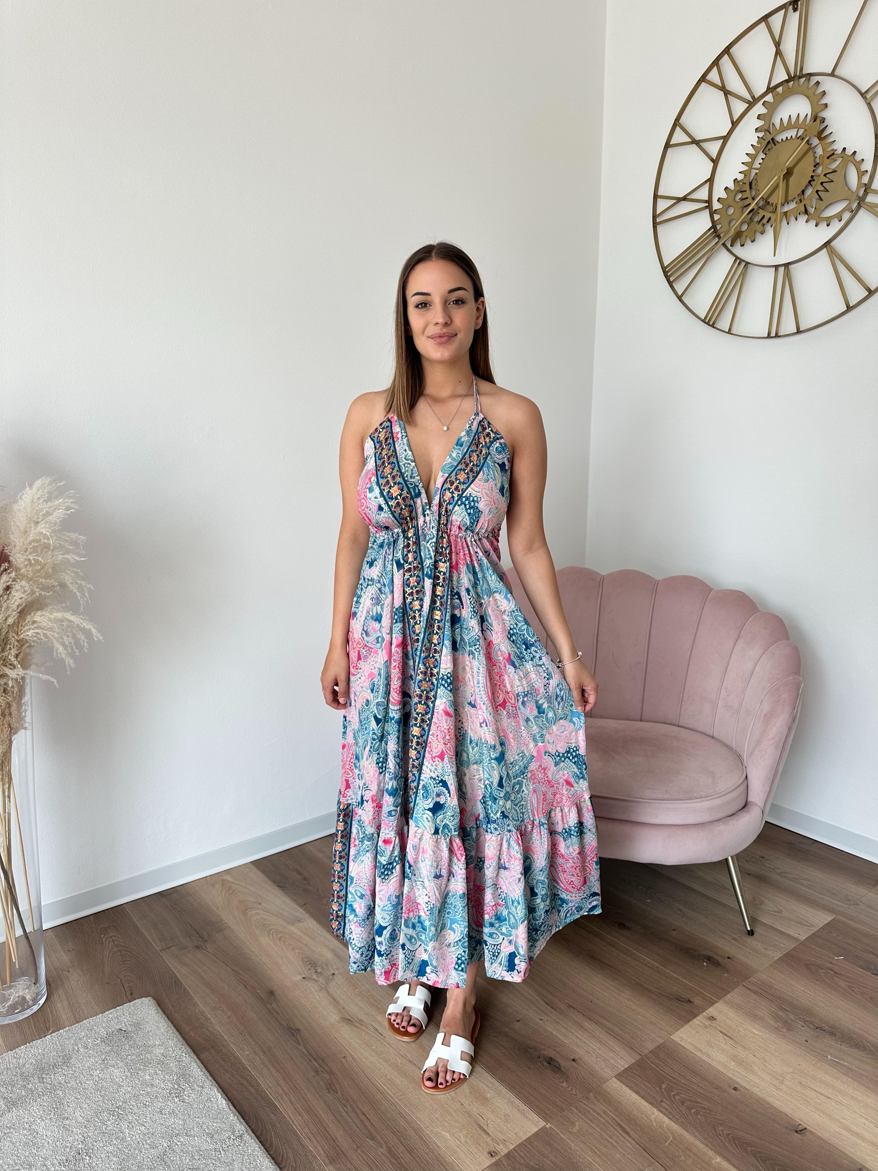 Abito con scollo profondo, si chiude Al collo, coulisse regolabile in base alla taglia