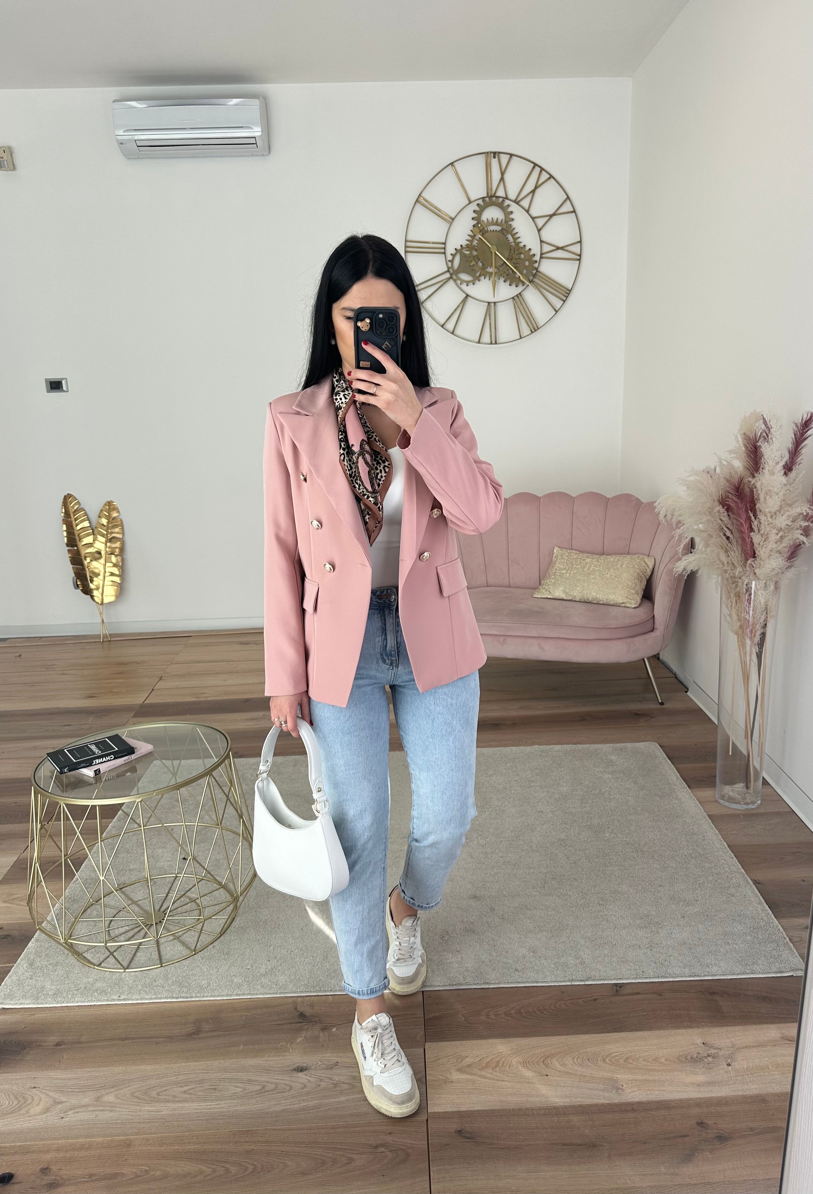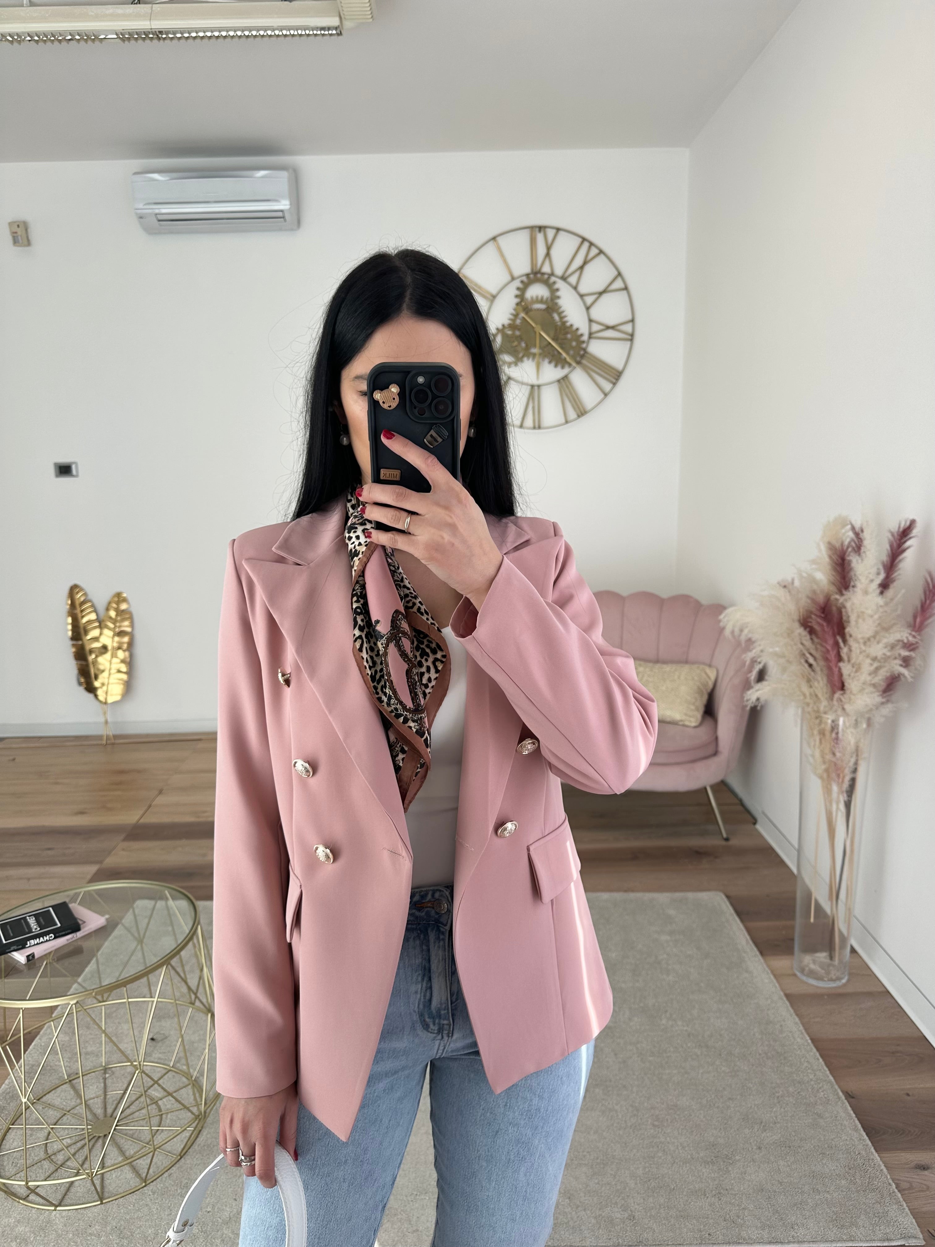 Blazer con bottoni modello doppio petto, foderato internamente, spalline imbottit