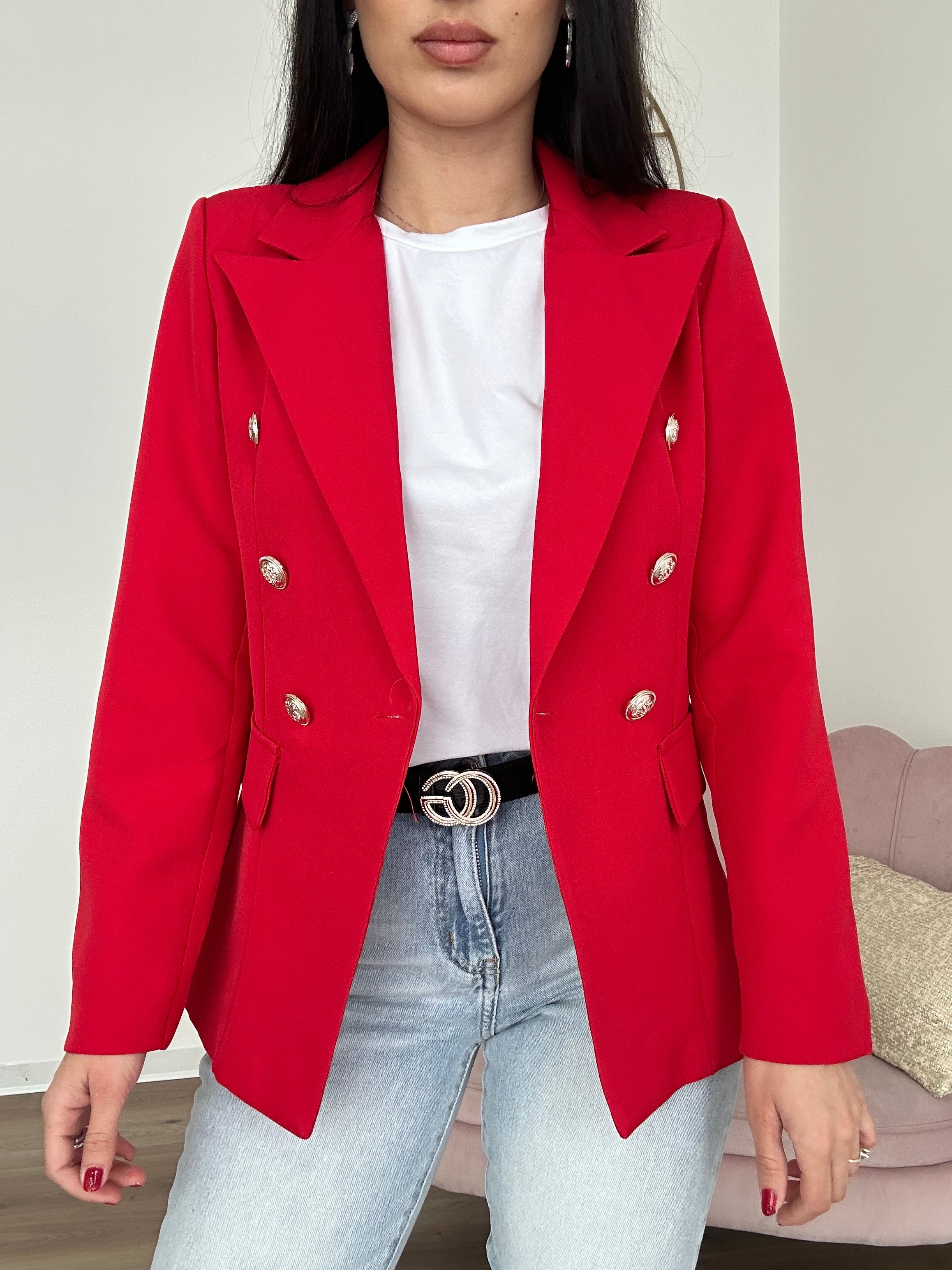 Blazer Con Bottoni Rosso