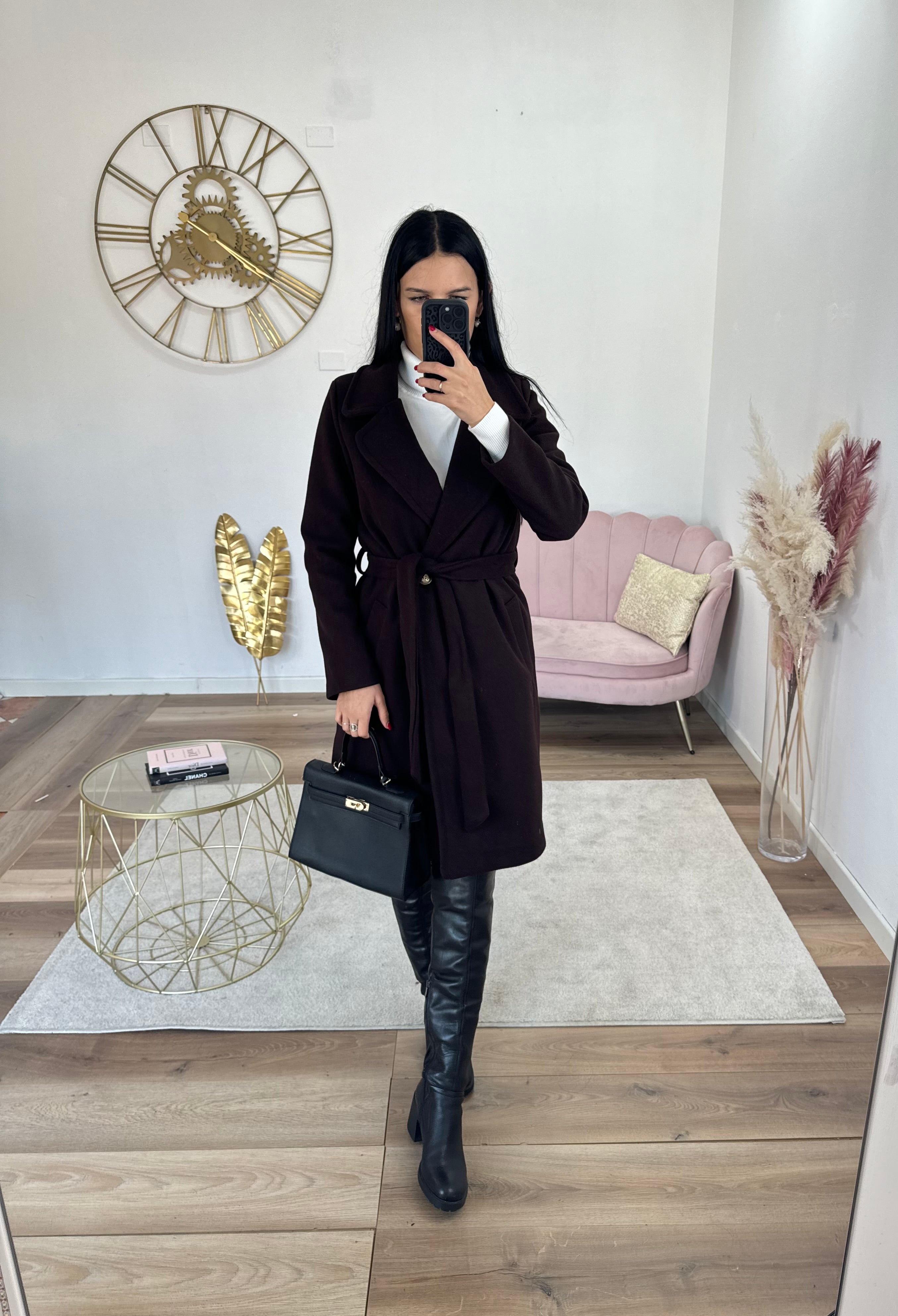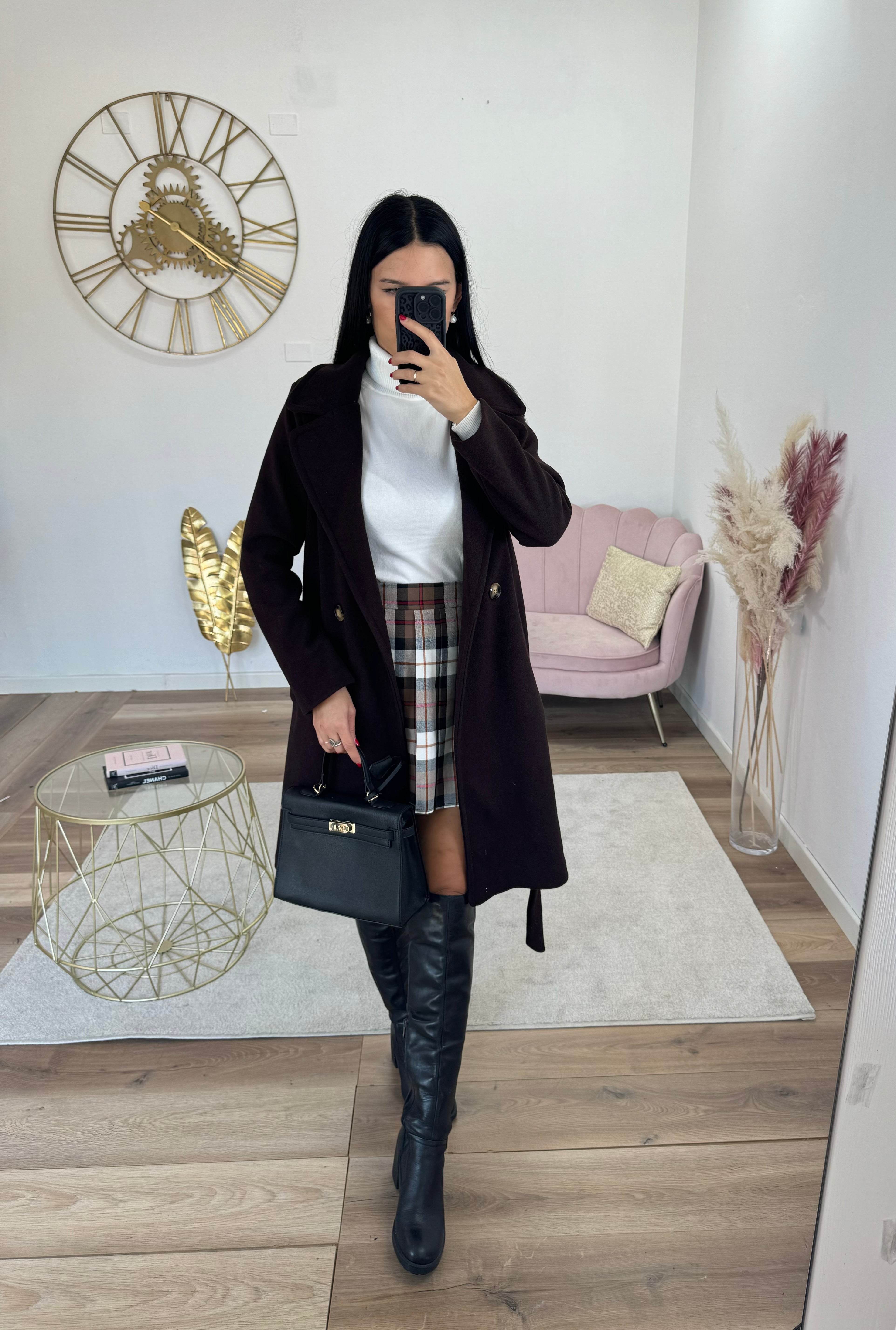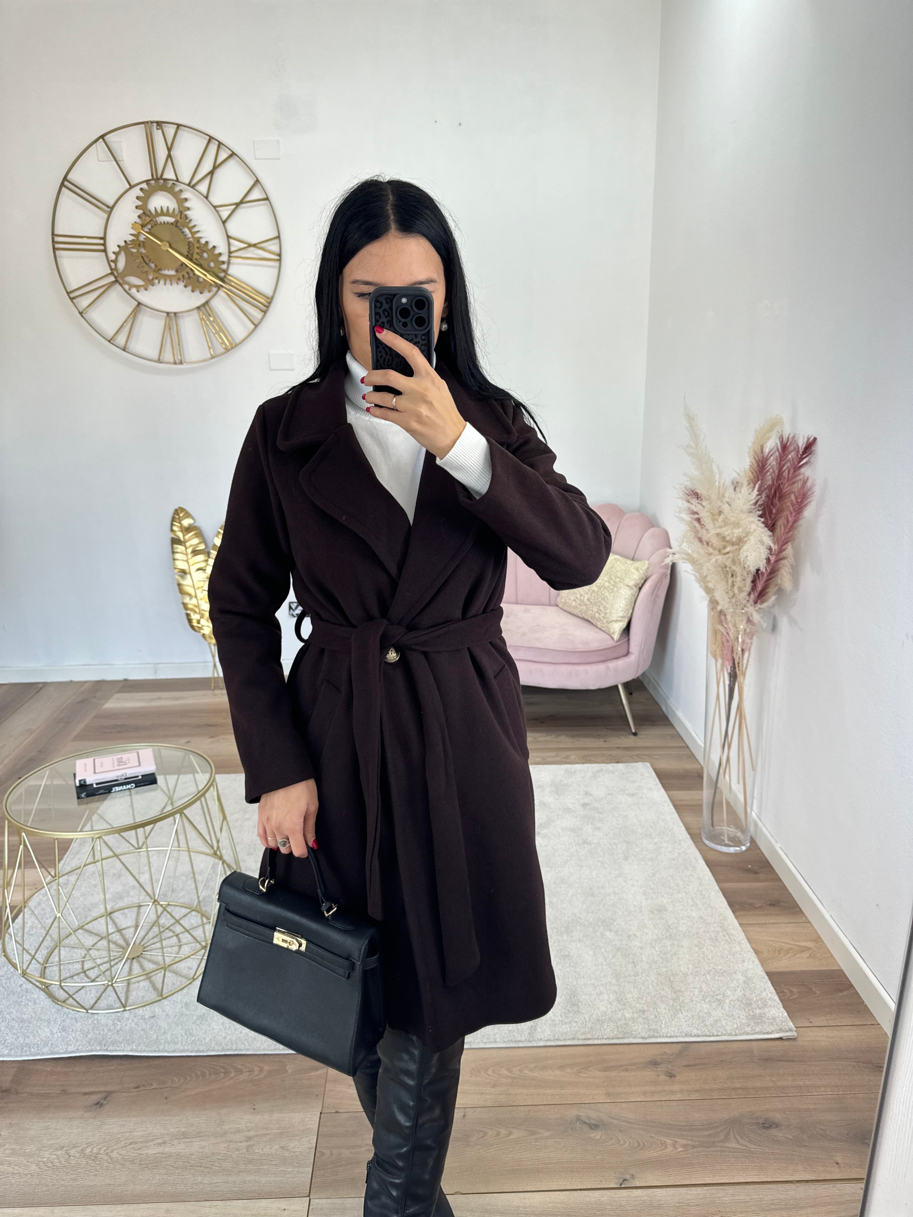 Cappottino morbido e caldo, foderato internamente con bottoni e cinturino della stessa fantasia.