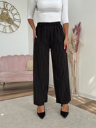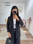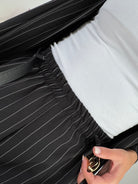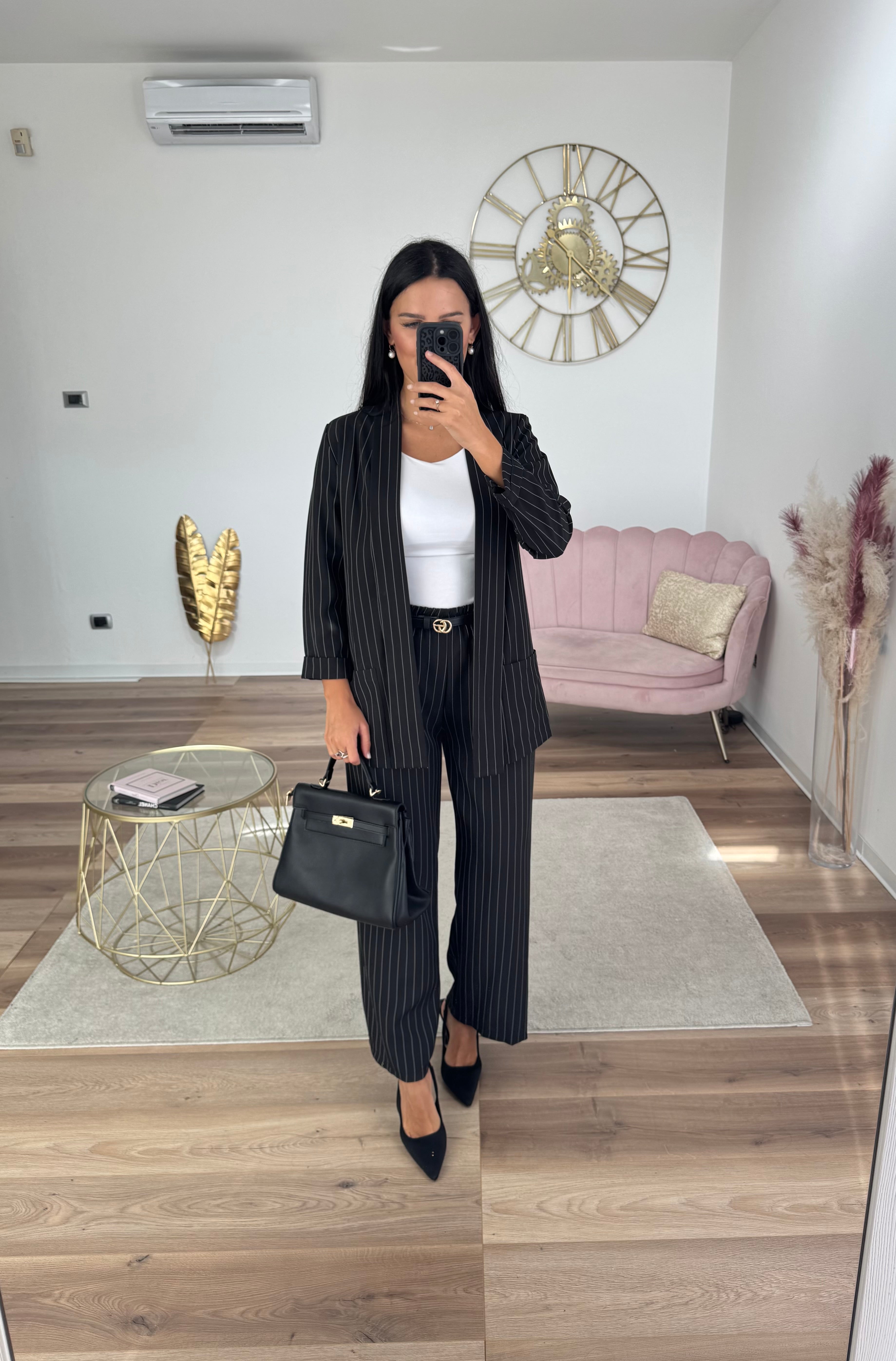Coordinato gessato completo di pantalone a palazzo con vita elastica, non ha le tasche - blazer non foderato internamente