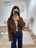 Giacca in suede, foderata internamente, chiusura con zip