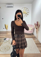 Gonna in flanella, si chiude con zip ed è elasticizzata, completa del suo cinturino