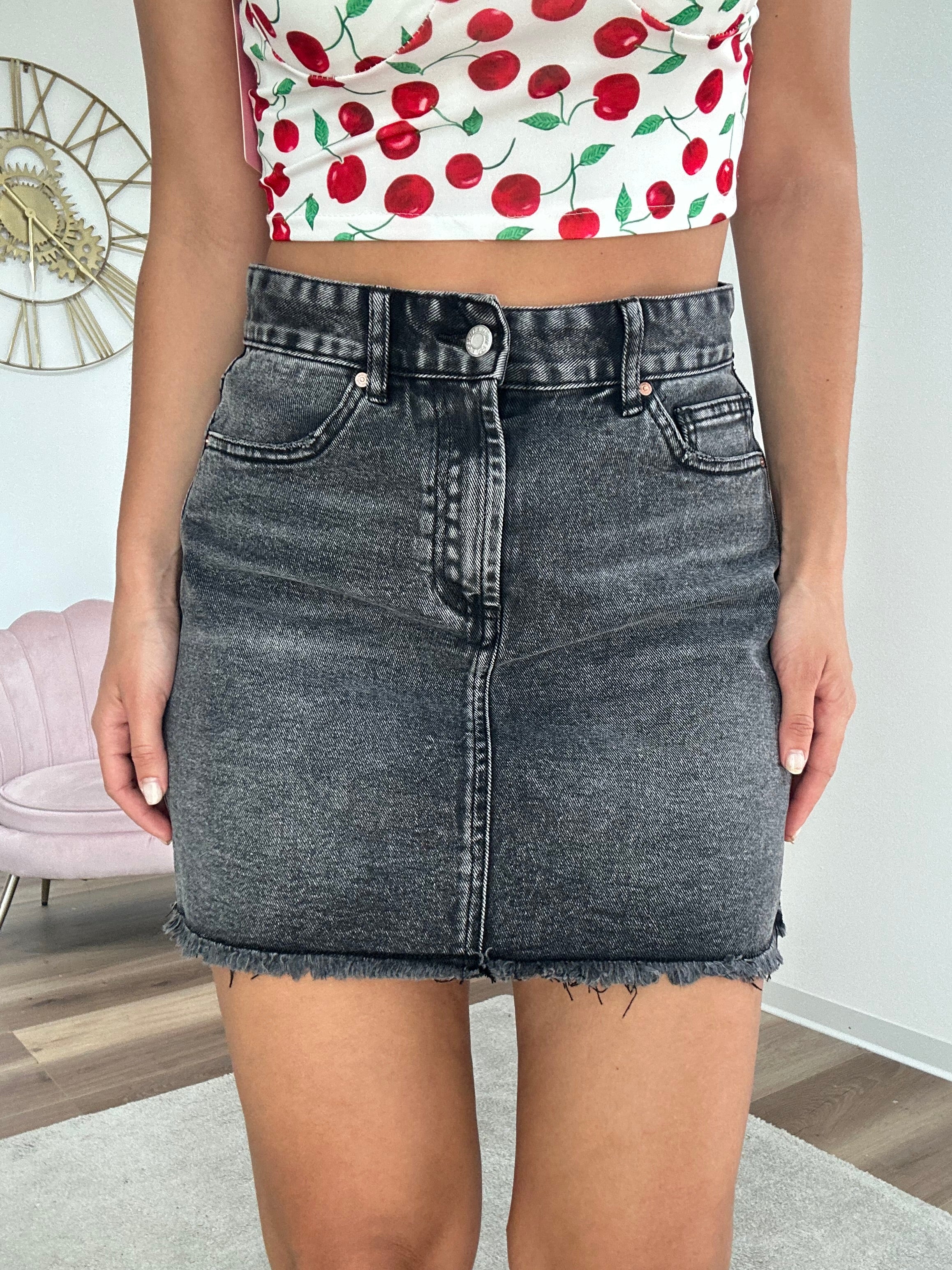 Gonna in denim, leggermente elasticizzata, vita alta.