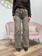 Jeans modello wide leg lavaggio vintage, elasticizzato, vita alta è completo di cintura