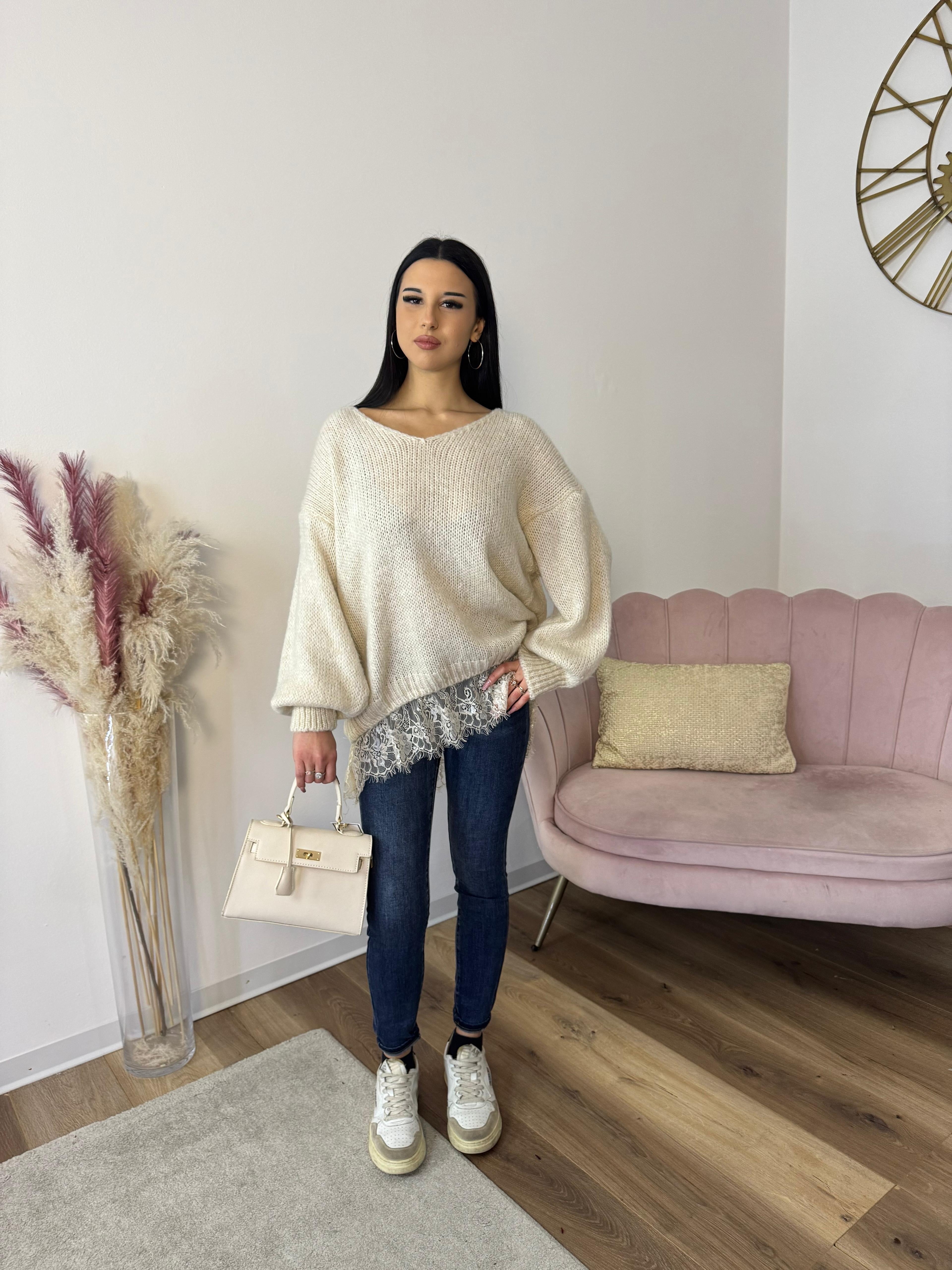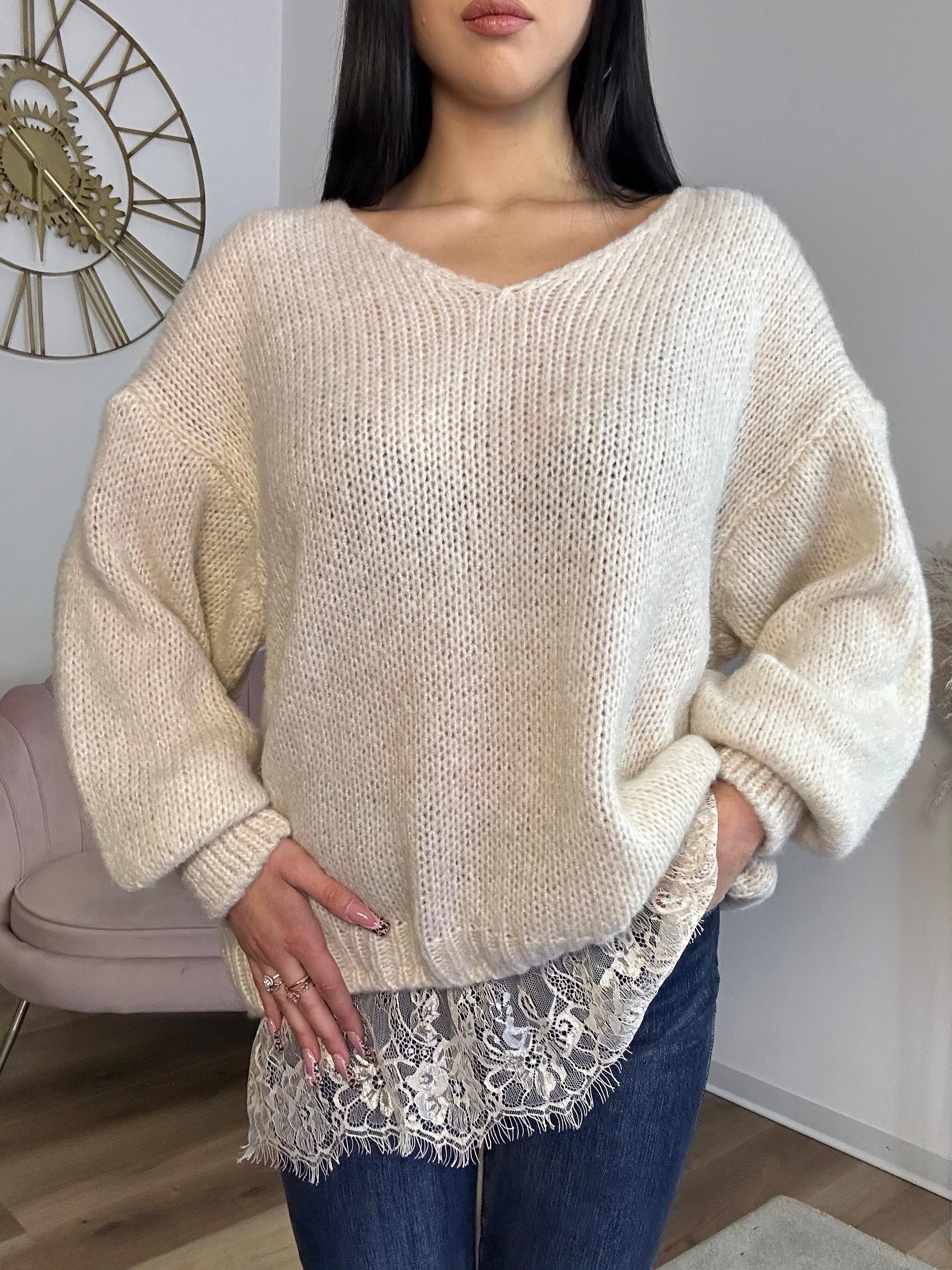 Maxipull caldo e morbido, con fusciacca, pizzo nel fondo, elasticizzato (10% mohair)