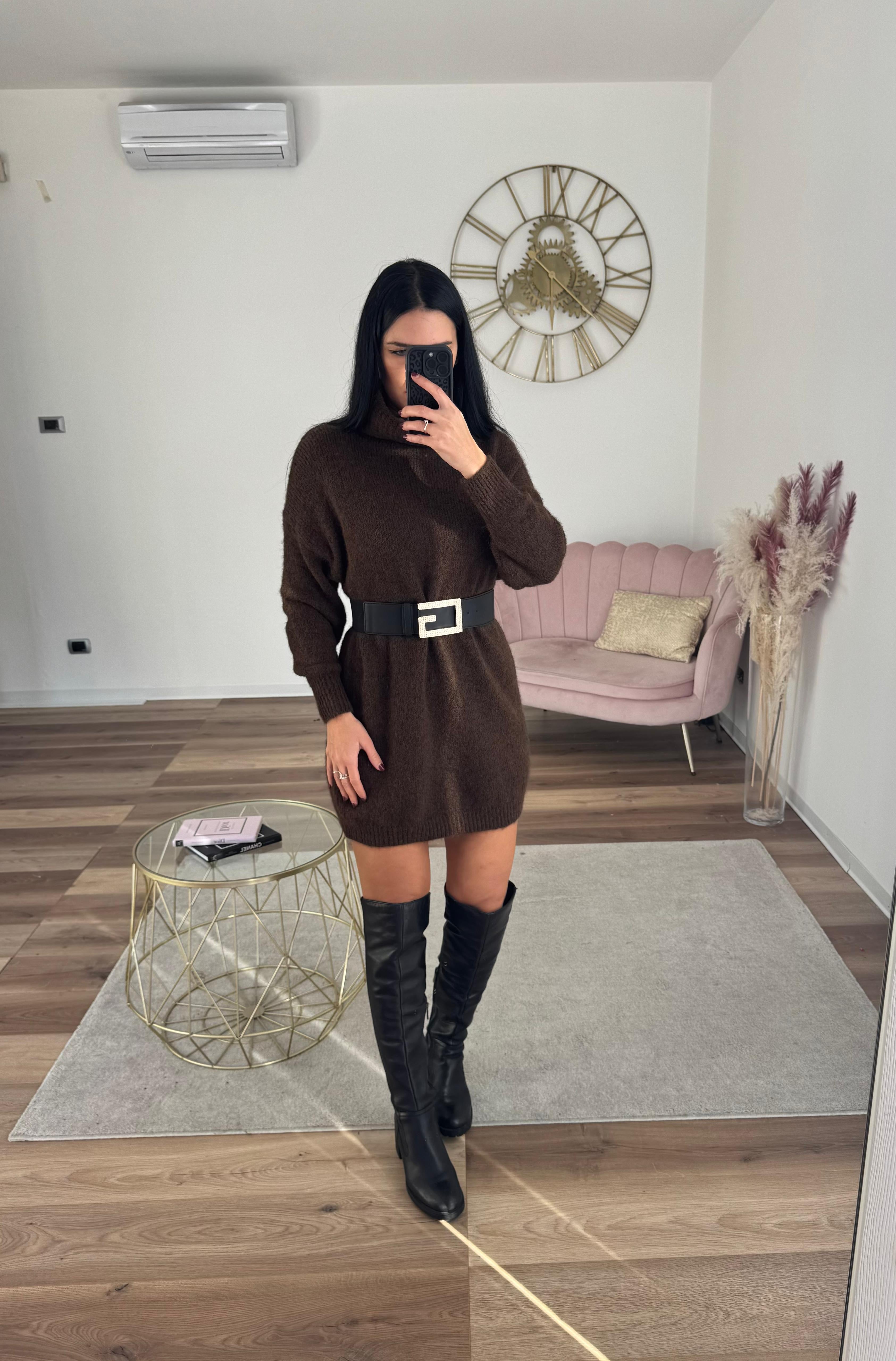 Maxipull caldo e morbido con collo alto,  scende morbido lungo i fianchi, elasticizzato