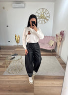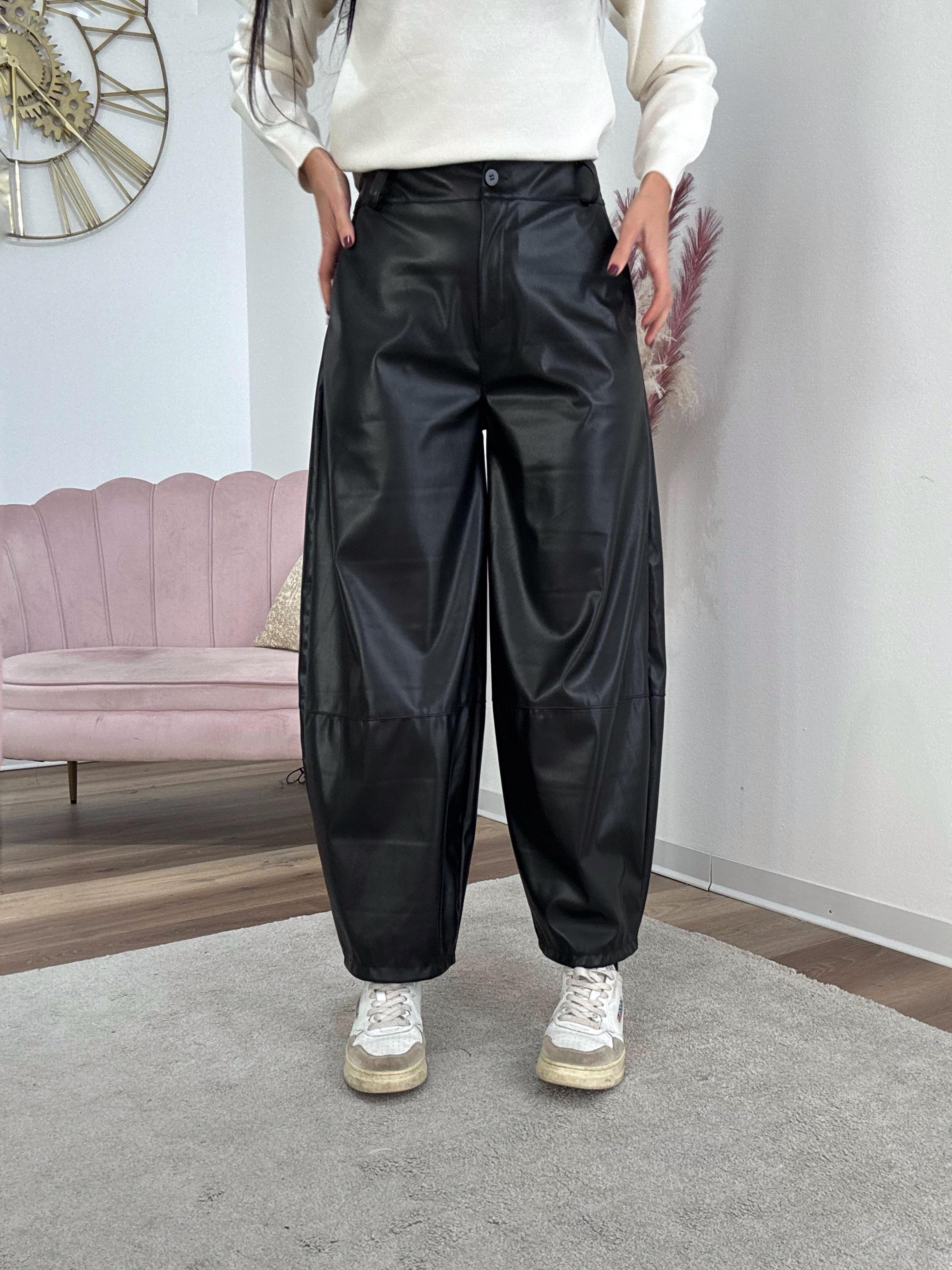 Pantalone in ecopelle modello a palloncino, vita elastica