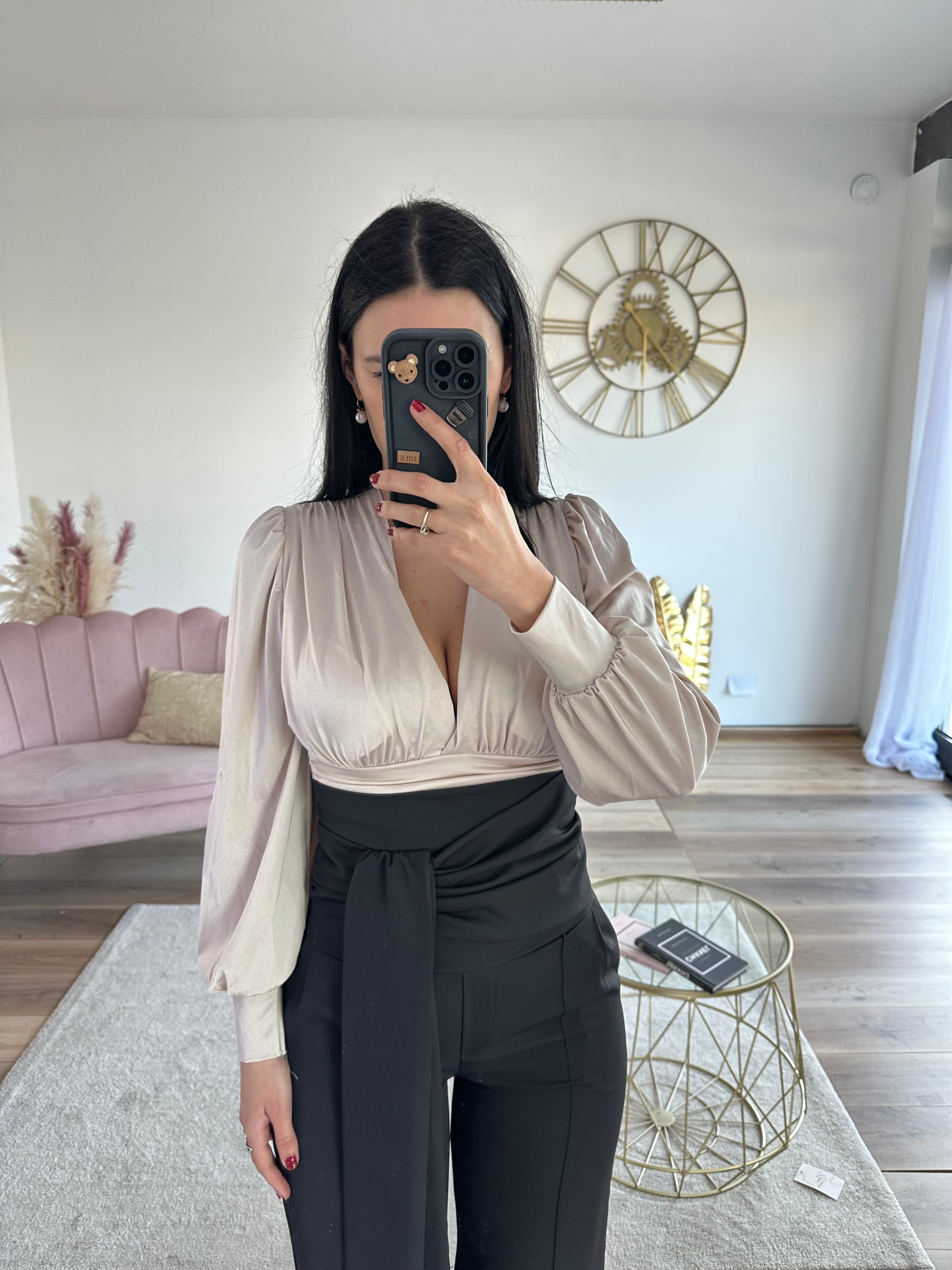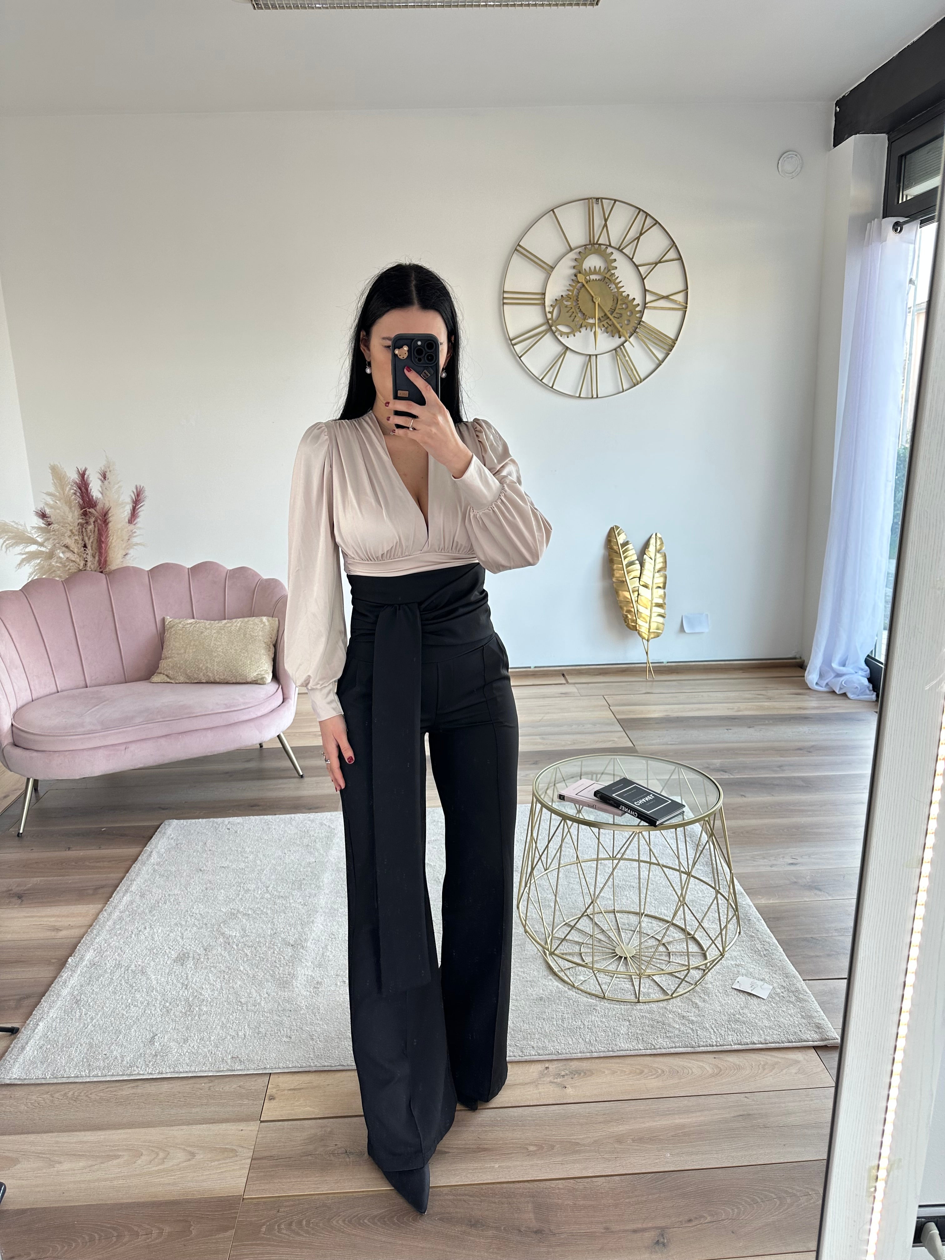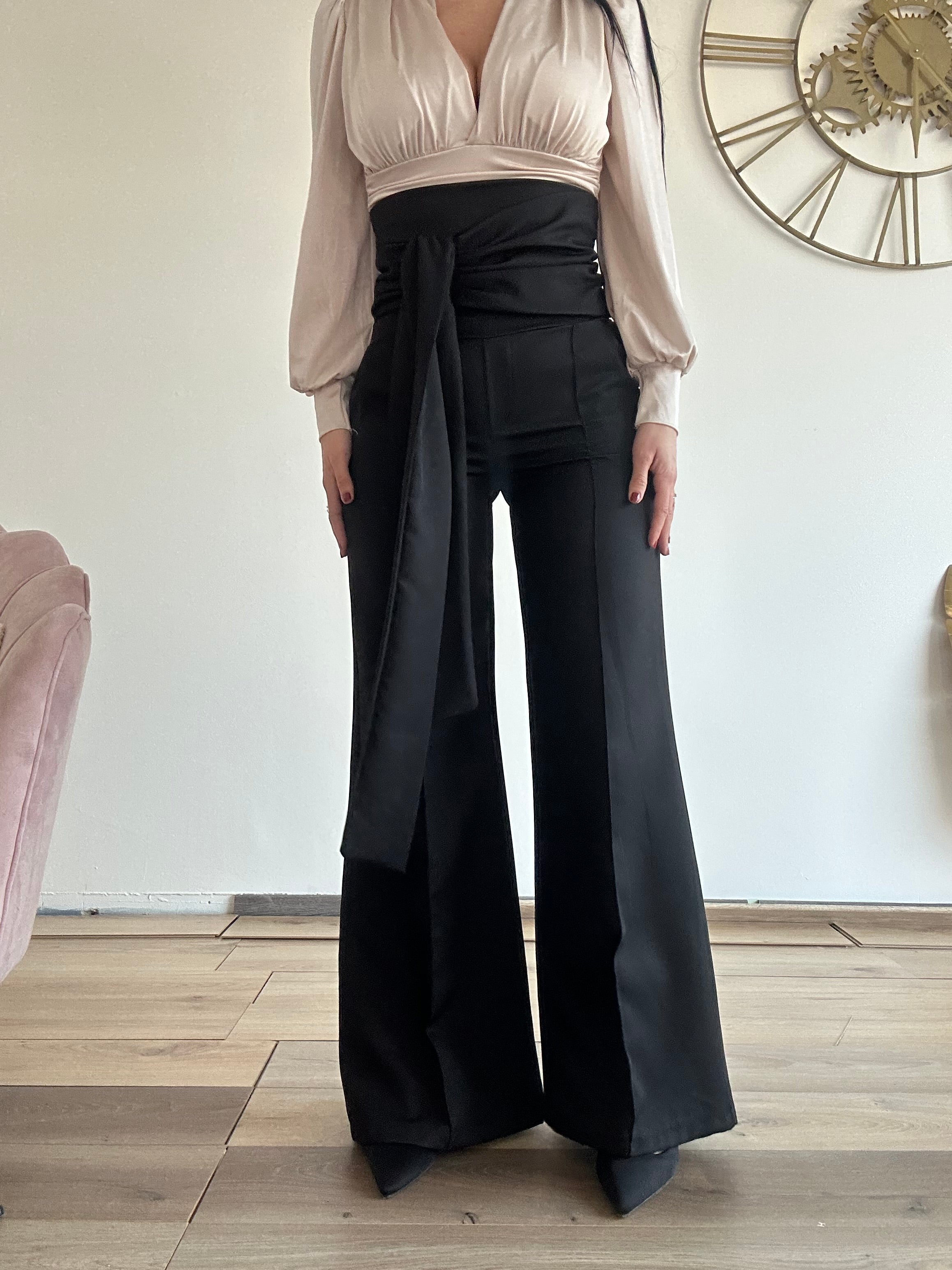 Pantalone elegante con intreccio particolare, vita molto alta, zip sul retro, non è elasticizzato, con tasche.