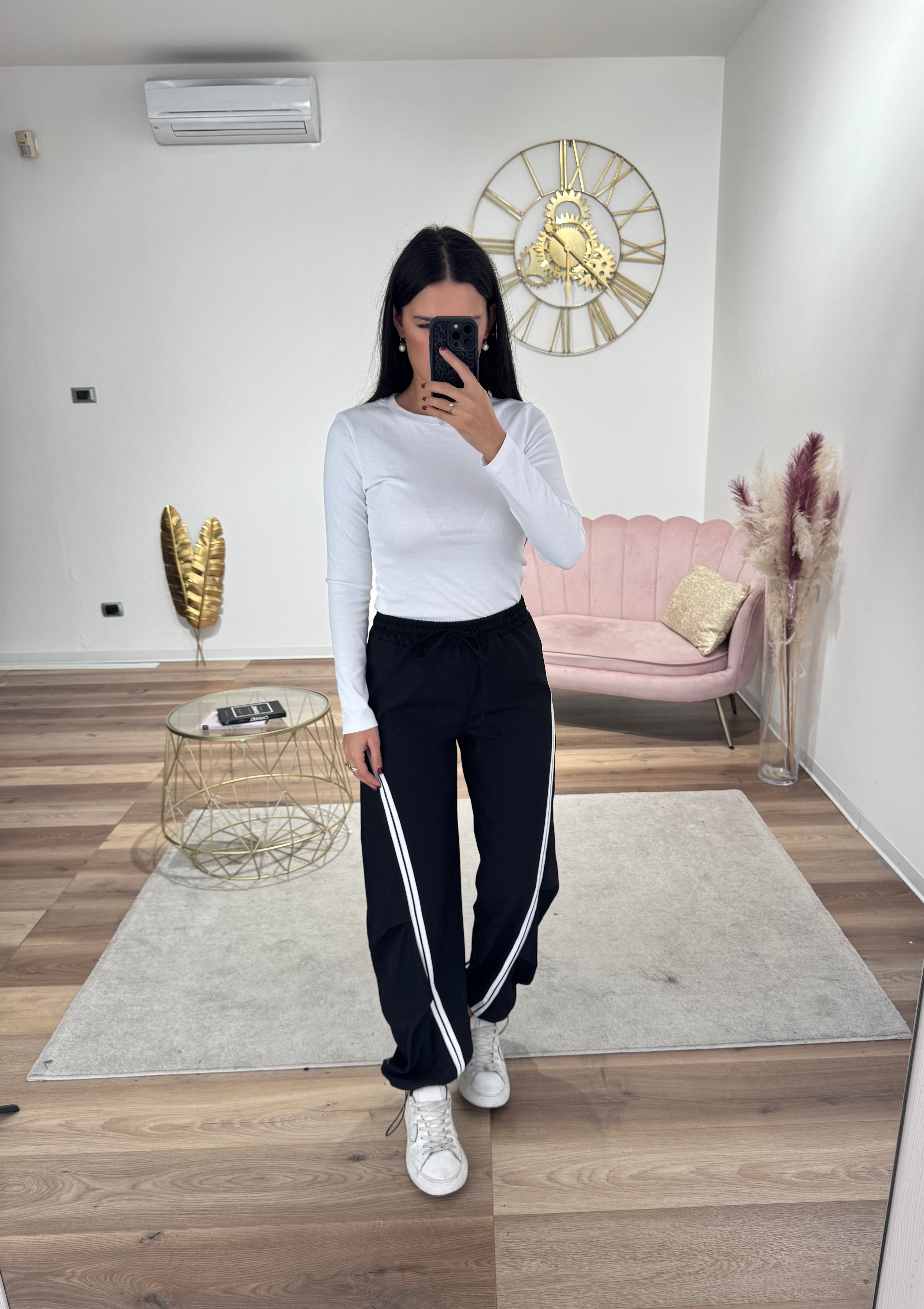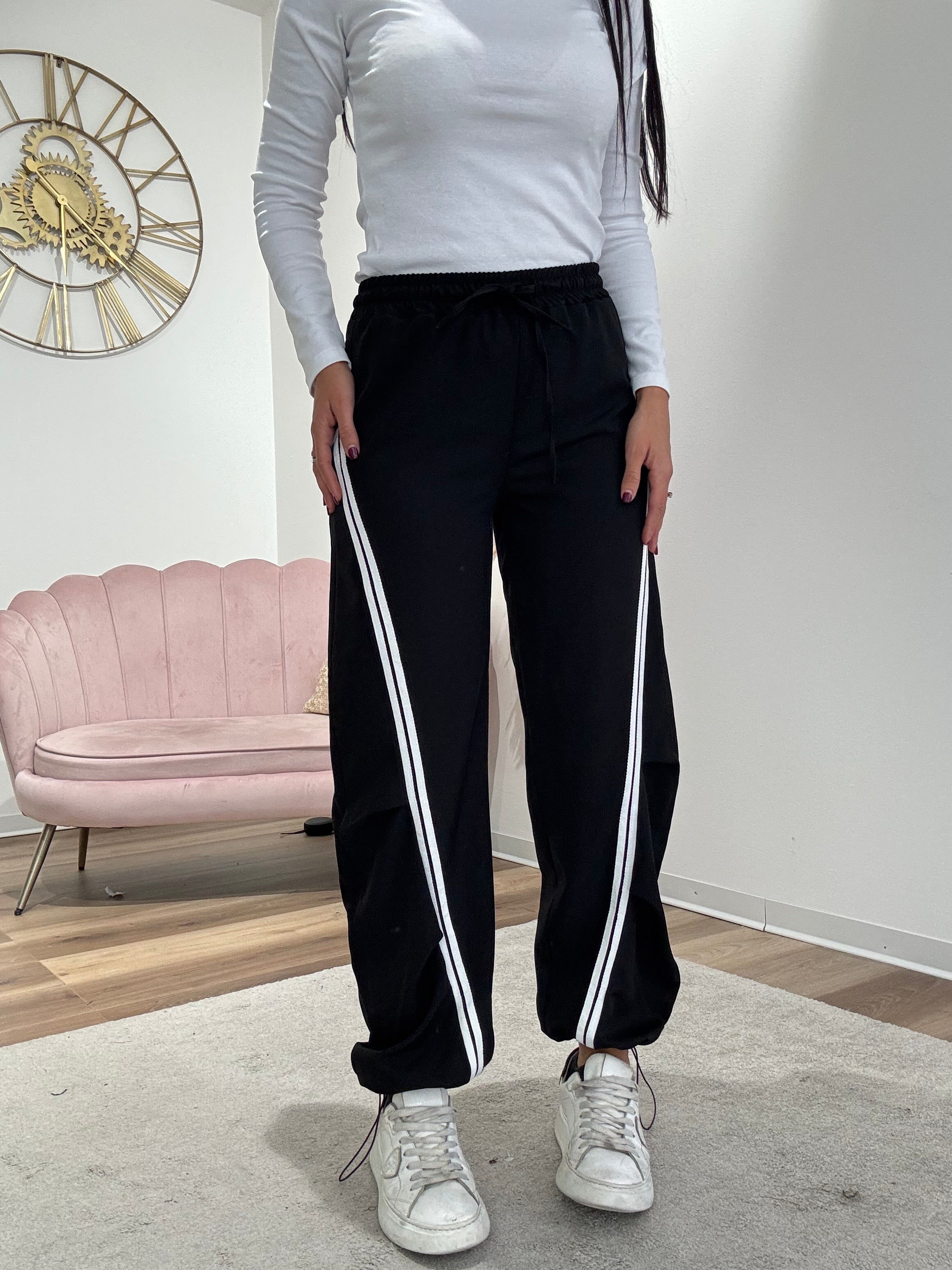 Pantalone con coulisse in vita, coulisse anche sul fondo regolabile